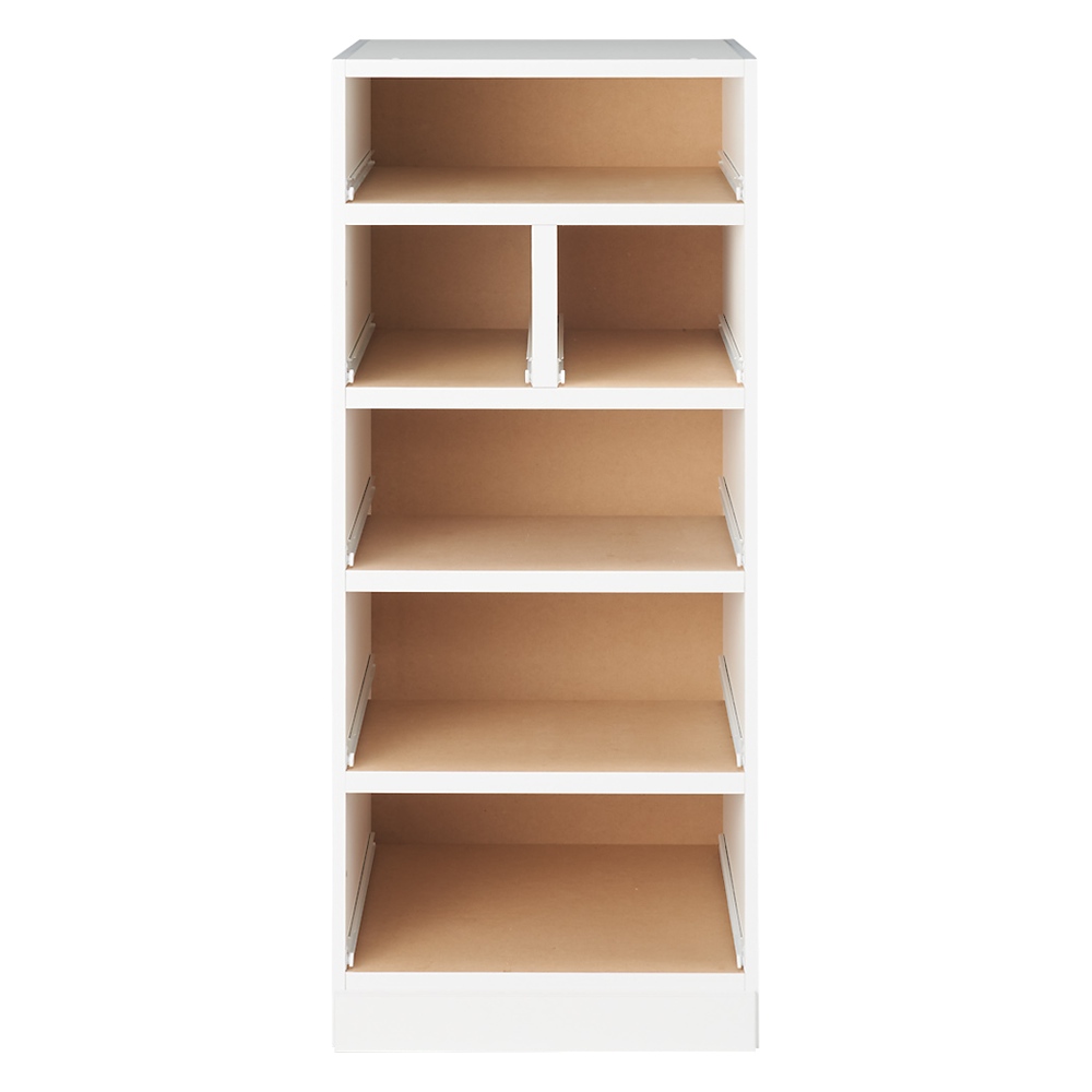大きな梁、重なり合う梁下にも対応する突っ張り式壁面収納。サイズやタイプが異なる40種類から自由に組み合わせて、壁面全体を美しく効率的に活用できます。