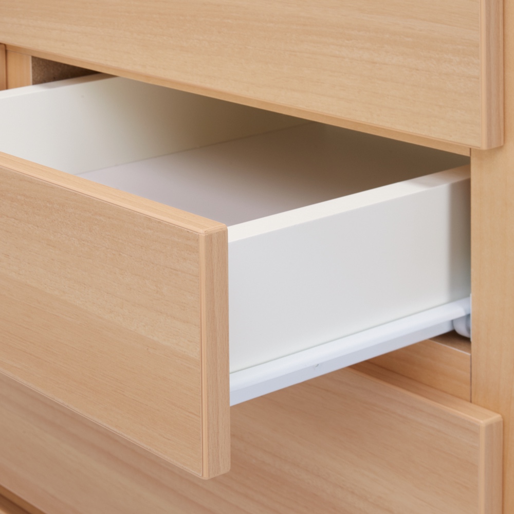 スライドレール 引き出しは全段ストッパー付きのスライドレール仕様でラクラク開閉。