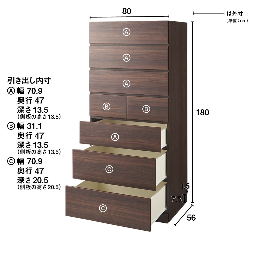 梁にぴったり、まるで備え付けのよう!これぞ壁面収納ワードローブの決定版!お部屋の複雑な天井構造にもしっかり対応してくれる一押しの機能派商品!天井の大きい梁、重なり合う梁、いろいろな梁下など、その構造で壁面収納を諦めざるを得なかった、そんな悩みを一気に解決する商品です。サイズやタイプの違う40種類から自由な組み合わせが可能なしたい衣類収納空間を実現する一押しの壁面収納ワードローブシリーズ!商品のポイントは3つあります(1)本体高さ140cmと180cmの2タイプあることにより対応する天井または梁下高さが168〜272cmとなり、対応範囲がとても広くなっております。(2)幅30cm、40cmの幅の狭い本体、上置きをご用意することで、縦方向の大きな梁下でも突っ張れるように考慮しております。(3)上置きの突っ張り板を隠して見た目をスッキリさせながら、(本体よりも)奥行の浅い梁下でも突っ張れるように、突っ張り板の奥行も浅くしつつ、後方に位置させております。上記のポイントから、大きな梁、高さはあるけど奥行は浅い梁、縦方向の大きな梁といった様々なタイプの梁下でも設置できるようになっている優れもの商品です。1.シリーズバリエーション40種類以上●幅は30cm、40cm、60cm、80cmの4サイズから。●奥行は56cmで全シリーズ共通です。●本体商品の高さは140cmと180cmの2タイプとなっております。●型タイプはハンガータイプ (※140cmはハンガーバー1本、高さ180cmはハンガーバー2本)ハンガー&引き出しタイプ棚タイプタワーチェストタイプからお選びいただけます。●商品カラーは清潔感のある優しい艶色のホワイト、自然の温もりを感じる横木目調のナチュラル、上質空間を演出する大人な横木目調のダークブラウンの3色からお選びいただけます。2.うれしい機能が充実な、こだわりの設計構造!●扉はプッシュ式扉になっているので、手で押すだけでスムーズに開閉できる仕様になっております。●引き出しが付いている商品はスライドレール仕様となっており、開け閉めがとてもラクラクです。●上置き商品は突っ張り式なので、商品と天井をしっかり支えることができとても安心です。●本体は床と接する部分の板を厚めにしており、床からのほこり侵入を開閉時も抑えることができます。●最下段の引き出しは、ラグなどを手前に敷いていても引っかからずにスムーズに開閉できます。●本体は幅木対応(1.5cm×7.5cm)となっておりますので、壁にピッタリの設置が出来ます。●転倒防止バンドもついておりますので、上置き購入がなく本体のみても安心してお使いいただけます。●こだわりのシートをぜいたくに使用しており、高級感のある商品に仕上がっております。●ホワイトは優しい艶感のある清潔感溢れる汚れに強いエクセルイーゴスシートを使用。●ナチュラルとダークブラウンには横木目が美しく映え、摩擦や傷にも強いオレフィンシートを使用しております。●飽きの来ないシンプルを追求した洗練デザインなので、どんなお部屋にもマッチし、末永くお使いいただけます。3.商品補足説明●本体幅30cmと幅40cmの扉タイプ商品のご購入を検討されている方は、扉の右開き、左開きを選択してご購入していただけます。(※タワーチェストタイプは除く)●もちろん梁のない壁面の天井でもばっちり設置可能ですので、マンションでも一戸建てにお住まいのお客様でもご使用いただけます。●上置きご希望の方は、本体の幅サイズに合わせて、高さ26〜90cmでオーダーできます。本体との組み合わせで天井【梁下】対応は168cm〜272cmとなります。