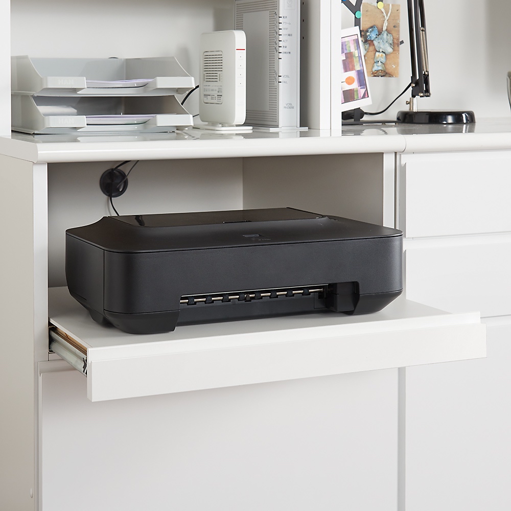プリンター収納部は手前に引き出せるスライドテーブル付きです。
