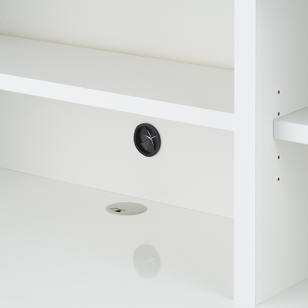 コード類はタテ・ヨコ自在に内部を通せる構造。外側から見えず、設置後の配線も簡単。