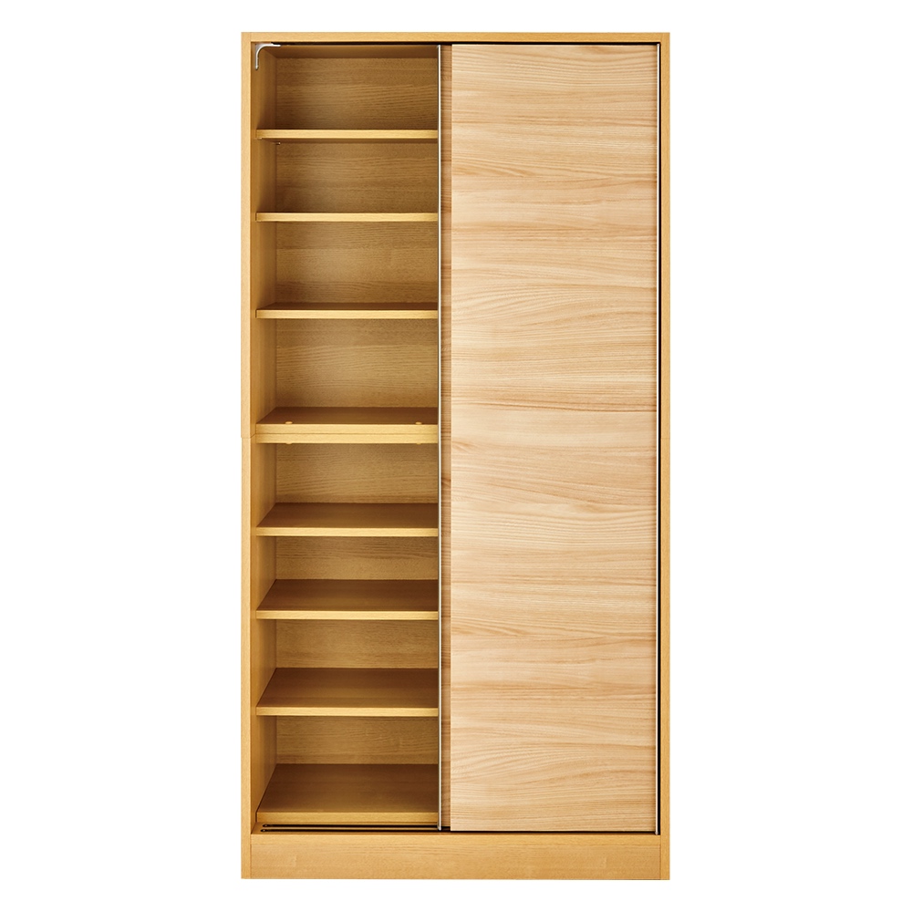 開閉に場所を取らない引き戸ですっきり、省スペースでも大量収納をかなえる壁面収納ユニット家具。棚・テレビ台・デスクの豊富なアイテムから組み合わせを選べます。天井ぴったりに高さオーダーできる別売りの上置きをセットすれば、さらに充実の収納空間が実現します。狭い部屋にも充実の収納を叶える、引き戸式の大量収納!開け閉めに場所を取らない引き戸式なので、手前にソファーや荷物があっても、どかすことなく省スペースで物を出し入れすることができます。ミラー扉タイプを使えば、お部屋を広く演出することも。【POINT 1】スッキリ片付くためのこだわりの工夫がいっぱい●引き戸はローラー付き&レール付きで開け閉めらくらく軽い力でスムーズに扉が開閉できるよう、ローラーとレールが付いています。アルミの取っ手は手を掛けられる範囲が広いのが◎いい意味で目立ちにくいので扉を閉めた状態の見た目も美しいです。●スッキリまとめて配線できるコード穴各アイテム同士は配線穴を通して内部で配線ができ、側面から外部のコンセント電源に繋げられます。アイテムを設置した後でも、配線のセッティングや変更も可能です。テレビ台やオープン引出しタイプには、棚の上下や背面へ繋がるコード穴も装備しています。テレビやデッキ、パソコンやプリンターはもちろん、掃除機を充電しながらしまうこともできます。●棚板は3cm間隔で調整可能収納物に合わせて細かく調整できるよう、棚板の間隔は3cmピッチ。もったいない空間が生まれない、効率収納&大量収納を叶えます。天板の全面が柔らかなアーチ曲線のため、高級感ある仕上がりになっています。【POINT 2】収納庫やテレビ台、上置き収納など商品ラインナップが豊富!タイプ・サイズ・カラーの組み合わせで、81種類と沢山のアイテム数をご用意しました。設置する部屋の雰囲気や収納したいものに合わせてお選びいただけます。●各商品アイテムの紹介・扉タイプ…フラット扉を開けると内部は収納棚になっている一番定番の型になります。 日用品やストック用品、本やCD・DVD、子どものおもちゃやペット用品まで何でもスッキリ収納。・ミラー扉タイプ…扉がミラーになっているのでお部屋を広く美しく演出します。 お出かけ前のちょっとした姿見の鏡としても便利です。収納内部は扉タイプと同じです。・段違い棚タイプ…棚板が前後で分割しているので、無駄なスペースなく効率的に収納できます。 物を前後にしまっても後ろのものが見やすかったり、前側の棚板を外せば長物も入ります。・PCデスク…スライドテーブルを引き出すとキーボードやノートパソコンが使えるパソコンデスクです。 スライドテーブルにはノートPCが収納できます。コンセントが2口付いています。・テレビ台…一般的な高さ約50cmにテレビが設置できるタイプです。コンセントは4口付き テレビ上の空間は無駄にならないよう置けるTVサイズを考慮して収納をつけました。・上置き…各収納庫とテレビ台の上に設置できる、天井までの空間を利用した収納です。 まるで備え付け収納のような、設置したい場所にぴったりを実現するオーダー家具です。 上置きは、高さを26〜90cmの間で1cm単位でオーダーすることができます。 ※対応できる天井高さは、208cm〜272cmまでになるのでご注意ください。○選べるおしゃれな3色のカラー展開・(ア)ホワイトは、お部屋を選ばない透明感のある爽やかさが魅力です。 シンプルでモダンなリビングにぴったりですが、清潔感あるキッチンインテリアにもお勧め。・(イ)ナチュラルは、木目柄が印象的な、明るさと優しさを持ち合わせた色味になります。 人気の北欧風スタイルやナチュラルモダンなインテリアと空間にマッチします。・(ウ)ダークブラウンは、落ち着いた天然木調が印象的。シックなインテリアによく合います。 プライベートルームや書斎で書棚使いとしても重厚感がありおすすめです。