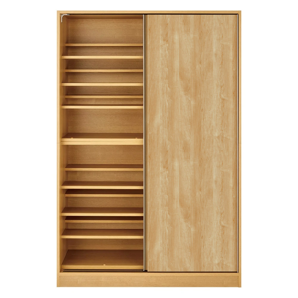 開閉に場所を取らない引き戸ですっきり、省スペースでも大量収納をかなえる壁面収納ユニット家具。棚・テレビ台・デスクの豊富なアイテムから組み合わせを選べます。天井ぴったりに高さオーダーできる別売りの上置きをセットすれば、さらに充実の収納空間が実現します。狭い部屋にも充実の収納を叶える、引き戸式の大量収納!開け閉めに場所を取らない引き戸式なので、手前にソファーや荷物があっても、どかすことなく省スペースで物を出し入れすることができます。ミラー扉タイプを使えば、お部屋を広く演出することも。【POINT 1】スッキリ片付くためのこだわりの工夫がいっぱい●引き戸はローラー付き&レール付きで開け閉めらくらく軽い力でスムーズに扉が開閉できるよう、ローラーとレールが付いています。アルミの取っ手は手を掛けられる範囲が広いのが◎いい意味で目立ちにくいので扉を閉めた状態の見た目も美しいです。●スッキリまとめて配線できるコード穴各アイテム同士は配線穴を通して内部で配線ができ、側面から外部のコンセント電源に繋げられます。アイテムを設置した後でも、配線のセッティングや変更も可能です。テレビ台やオープン引出しタイプには、棚の上下や背面へ繋がるコード穴も装備しています。テレビやデッキ、パソコンやプリンターはもちろん、掃除機を充電しながらしまうこともできます。●棚板は3cm間隔で調整可能収納物に合わせて細かく調整できるよう、棚板の間隔は3cmピッチ。もったいない空間が生まれない、効率収納&大量収納を叶えます。天板の全面が柔らかなアーチ曲線のため、高級感ある仕上がりになっています。【POINT 2】収納庫やテレビ台、上置き収納など商品ラインナップが豊富!タイプ・サイズ・カラーの組み合わせで、81種類と沢山のアイテム数をご用意しました。設置する部屋の雰囲気や収納したいものに合わせてお選びいただけます。●各商品アイテムの紹介・扉タイプ…フラット扉を開けると内部は収納棚になっている一番定番の型になります。 日用品やストック用品、本やCD・DVD、子どものおもちゃやペット用品まで何でもスッキリ収納。・ミラー扉タイプ…扉がミラーになっているのでお部屋を広く美しく演出します。 お出かけ前のちょっとした姿見の鏡としても便利です。収納内部は扉タイプと同じです。・段違い棚タイプ…棚板が前後で分割しているので、無駄なスペースなく効率的に収納できます。 物を前後にしまっても後ろのものが見やすかったり、前側の棚板を外せば長物も入ります。・PCデスク…スライドテーブルを引き出すとキーボードやノートパソコンが使えるパソコンデスクです。 スライドテーブルにはノートPCが収納できます。コンセントが2口付いています。・テレビ台…一般的な高さ約50cmにテレビが設置できるタイプです。コンセントは4口付き テレビ上の空間は無駄にならないよう置けるTVサイズを考慮して収納をつけました。・上置き…各収納庫とテレビ台の上に設置できる、天井までの空間を利用した収納です。 まるで備え付け収納のような、設置したい場所にぴったりを実現するオーダー家具です。 上置きは、高さを26〜90cmの間で1cm単位でオーダーすることができます。 ※対応できる天井高さは、208cm〜272cmまでになるのでご注意ください。○選べるおしゃれな3色のカラー展開・(ア)ホワイトは、お部屋を選ばない透明感のある爽やかさが魅力です。 シンプルでモダンなリビングにぴったりですが、清潔感あるキッチンインテリアにもお勧め。・(イ)ナチュラルは、木目柄が印象的な、明るさと優しさを持ち合わせた色味になります。 人気の北欧風スタイルやナチュラルモダンなインテリアと空間にマッチします。・(ウ)ダークブラウンは、落ち着いた天然木調が印象的。シックなインテリアによく合います。 プライベートルームや書斎で書棚使いとしても重厚感がありおすすめです。