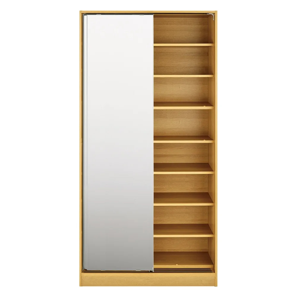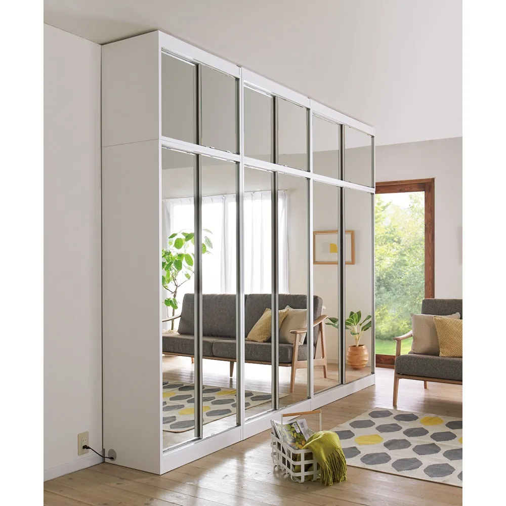 開閉に場所を取らない引き戸ですっきり、省スペースでも大量収納をかなえる壁面収納ユニット家具。棚・テレビ台・デスクの豊富なアイテムから組み合わせを選べます。天井ぴったりに高さオーダーできる別売りの上置きをセットすれば、さらに充実の収納空間が実現します。狭い部屋にも充実の収納を叶える、引き戸式の大量収納!開け閉めに場所を取らない引き戸式なので、手前にソファーや荷物があっても、どかすことなく省スペースで物を出し入れすることができます。ミラー扉タイプを使えば、お部屋を広く演出することも。【POINT 1】スッキリ片付くためのこだわりの工夫がいっぱい●引き戸はローラー付き&レール付きで開け閉めらくらく軽い力でスムーズに扉が開閉できるよう、ローラーとレールが付いています。アルミの取っ手は手を掛けられる範囲が広いのが◎いい意味で目立ちにくいので扉を閉めた状態の見た目も美しいです。●スッキリまとめて配線できるコード穴各アイテム同士は配線穴を通して内部で配線ができ、側面から外部のコンセント電源に繋げられます。アイテムを設置した後でも、配線のセッティングや変更も可能です。テレビ台やオープン引出しタイプには、棚の上下や背面へ繋がるコード穴も装備しています。テレビやデッキ、パソコンやプリンターはもちろん、掃除機を充電しながらしまうこともできます。●棚板は3cm間隔で調整可能収納物に合わせて細かく調整できるよう、棚板の間隔は3cmピッチ。もったいない空間が生まれない、効率収納&大量収納を叶えます。天板の全面が柔らかなアーチ曲線のため、高級感ある仕上がりになっています。【POINT 2】収納庫やテレビ台、上置き収納など商品ラインナップが豊富!タイプ・サイズ・カラーの組み合わせで、81種類と沢山のアイテム数をご用意しました。設置する部屋の雰囲気や収納したいものに合わせてお選びいただけます。●各商品アイテムの紹介・扉タイプ…フラット扉を開けると内部は収納棚になっている一番定番の型になります。 日用品やストック用品、本やCD・DVD、子どものおもちゃやペット用品まで何でもスッキリ収納。・ミラー扉タイプ…扉がミラーになっているのでお部屋を広く美しく演出します。 お出かけ前のちょっとした姿見の鏡としても便利です。収納内部は扉タイプと同じです。・段違い棚タイプ…棚板が前後で分割しているので、無駄なスペースなく効率的に収納できます。 物を前後にしまっても後ろのものが見やすかったり、前側の棚板を外せば長物も入ります。・PCデスク…スライドテーブルを引き出すとキーボードやノートパソコンが使えるパソコンデスクです。 スライドテーブルにはノートPCが収納できます。コンセントが2口付いています。・テレビ台…一般的な高さ約50cmにテレビが設置できるタイプです。コンセントは4口付き テレビ上の空間は無駄にならないよう置けるTVサイズを考慮して収納をつけました。・上置き…各収納庫とテレビ台の上に設置できる、天井までの空間を利用した収納です。 まるで備え付け収納のような、設置したい場所にぴったりを実現するオーダー家具です。 上置きは、高さを26〜90cmの間で1cm単位でオーダーすることができます。 ※対応できる天井高さは、208cm〜272cmまでになるのでご注意ください。○選べるおしゃれな3色のカラー展開・(ア)ホワイトは、お部屋を選ばない透明感のある爽やかさが魅力です。 シンプルでモダンなリビングにぴったりですが、清潔感あるキッチンインテリアにもお勧め。・(イ)ナチュラルは、木目柄が印象的な、明るさと優しさを持ち合わせた色味になります。 人気の北欧風スタイルやナチュラルモダンなインテリアと空間にマッチします。・(ウ)ダークブラウンは、落ち着いた天然木調が印象的。シックなインテリアによく合います。 プライベートルームや書斎で書棚使いとしても重厚感がありおすすめです。