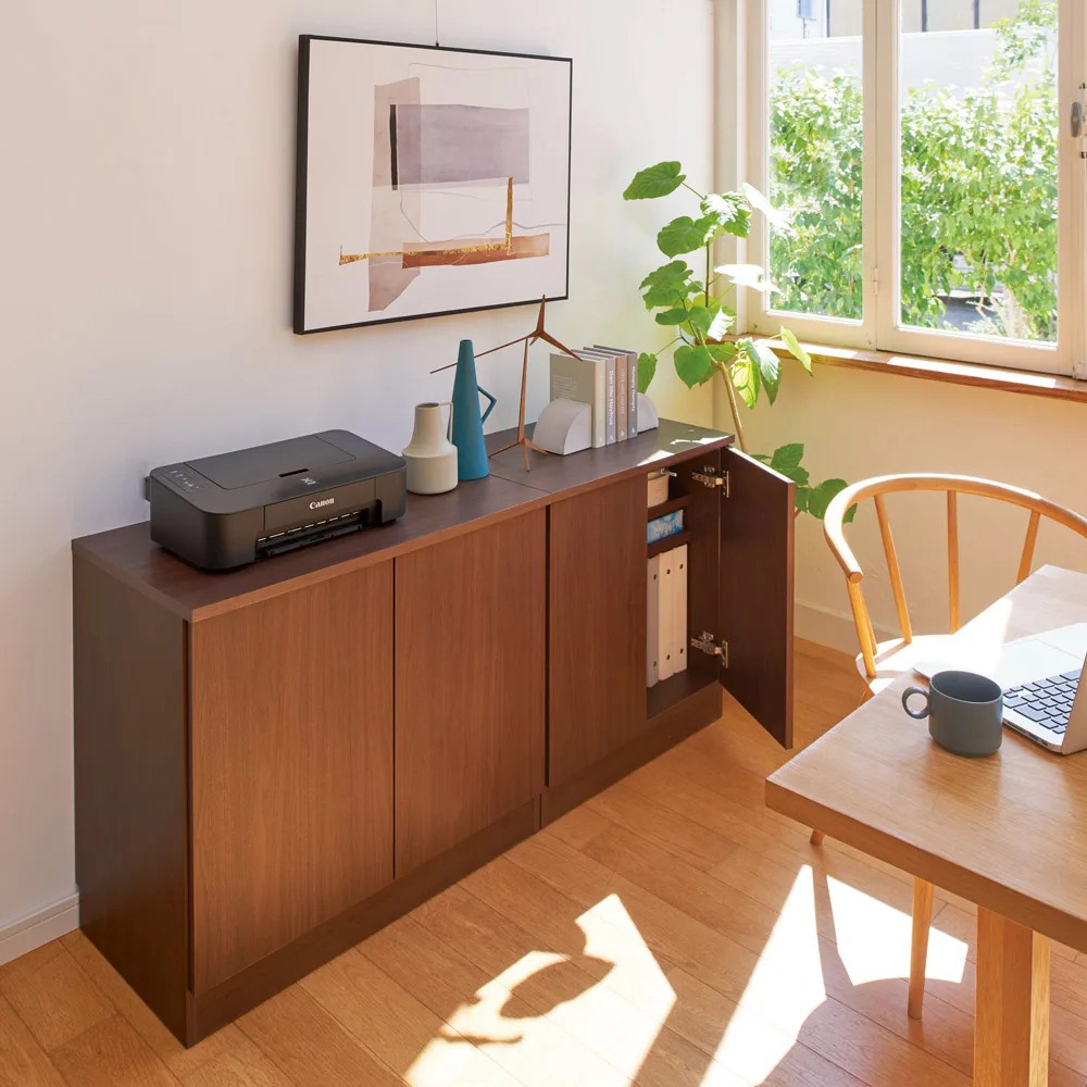 使用イメージ(ウ)ナチュラル チェスト(写真右)と、シリーズ品のキャビネットタイプ(写真左・中央)を並べても高さが揃うので統一感がありすっきり。 ※「ぴったりサイズが見つかる」シリーズには、別売りの「プッシュ扉キャビネットシリーズ」がございます。