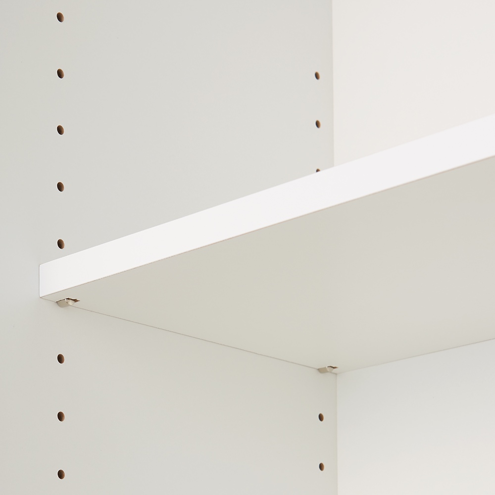 収納するものに合わせて調節できる可動棚。板棚は3cmピッチで可動。収納するものの高さに合わせて設置できます。