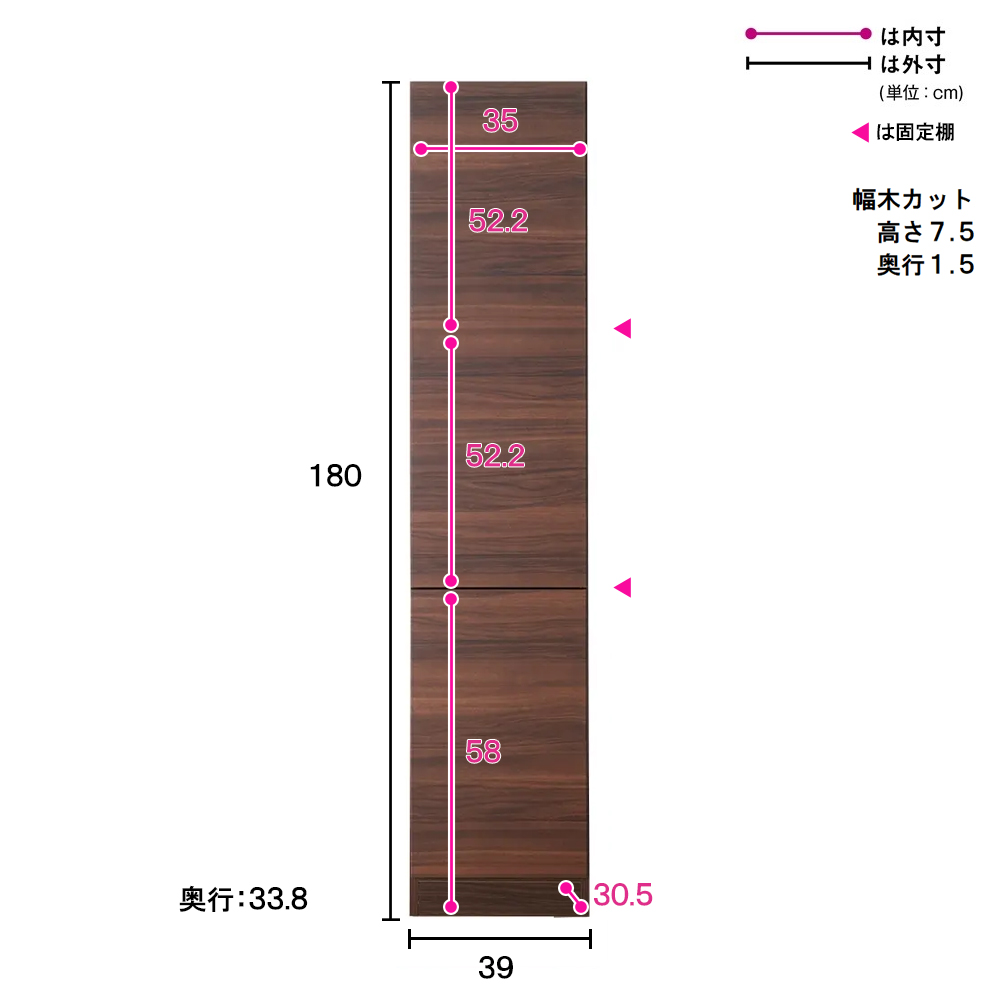 幅39cmタイプは扉の開きを選べます。右開き・左開きのいずれかをご指定ください。