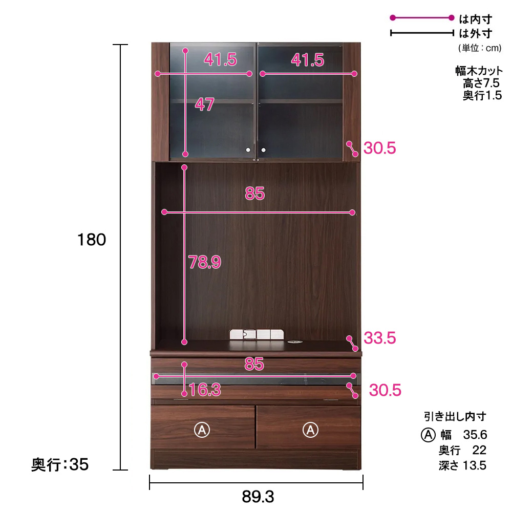 幅木よけ加工。壁面にぴったり設置できます。