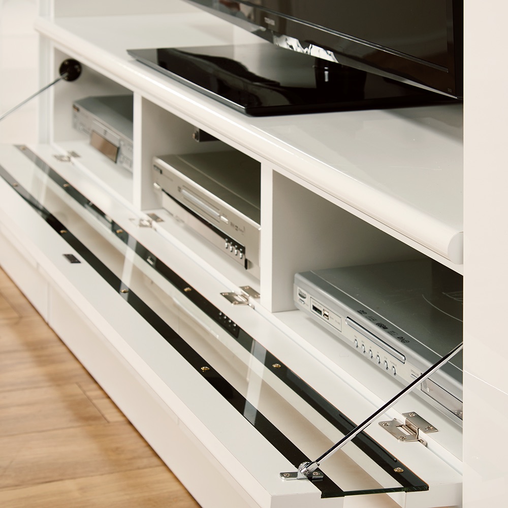 「眺める」「見せる」を、心ゆくまで楽しむ。生活感は扉収納で美しく目隠し。ガラス扉収納のついた、上質なテレビ台。「見せる」と「隠す」を両立する収納庫壁面収納テレビ台は、美しくしまうことを徹底的に考え抜いた収納庫です。ガラス扉付きで、お気に入りのアイテムを美しく展示しながらホコリからも守れます。壁一面に設置すると、ハイクラスマンションのモデルルームのような空間に。生活感を隠しつつエレガントなお部屋を実現します。上質なガラス扉と自由に調整できる可動棚で魅せる収納ガラス扉を採用することで、収納してもコレクションを「眺める」ことができます。指紋が付きにくい小さめの取っ手が全体の上質な雰囲気を損ねません。棚板は6cmピッチで稼働、扉が付いてることでホコリ対策も万全。理想のコレクション収納を実現するための完璧な設計です。機能美を兼ね備えた収納力抜群のテレビ台テレビ台部分の天板は傷や汚れに強く、耐荷重約20kg。AV機器の収納も扉式で埃対策ばっちり。プッシュ扉で簡単に開閉できるので利便性も。さらに、引き出し付きでDVDやブルーレイなどの収納にも最適。引き出しはスライドレール付きでスムーズな操作を実現します。スマートな配線管理が実現するコード穴付き配線をきれいに整理できるコード穴付きで、使いやすさが向上。配線が目立たず、お部屋をすっきりと美しく保つことができます。スマートなフィット感、幅木よけカット採用幅木の存在を気にせず家具を壁にぴったりと設置できます。無駄な隙間をなくし見た目も美しく、お部屋全体がすっきりとした印象に。国内生産のこだわりが光るハイクラス仕様美しさを保つために細部にまでこだわったハイクラス仕様の家具です。上質な商品をお届けするため、厳選した国内のオーダー家具工場で生産し、家具に対する情熱を持った職人が1点1点丁寧に仕上げています。部材の選定までこだわり、日本製の高品質を実感できる見た目の美しさ、使い勝手のよさ、耐久性を兼ね備えた逸品です。転倒防止バンド付きで地震対策も万全。