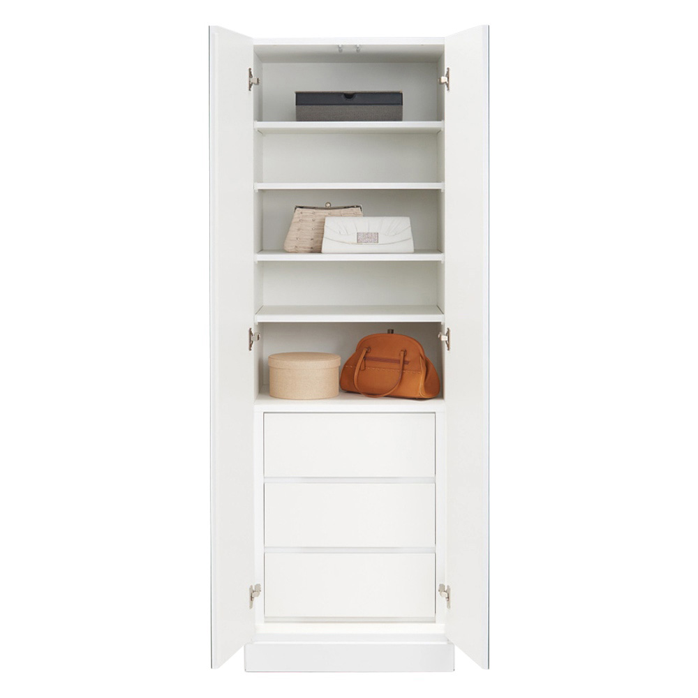 コーディネート例(ア)前面:ミラー・本体:ホワイト (裏:寝室側)背面も美しい化粧仕上げ 。