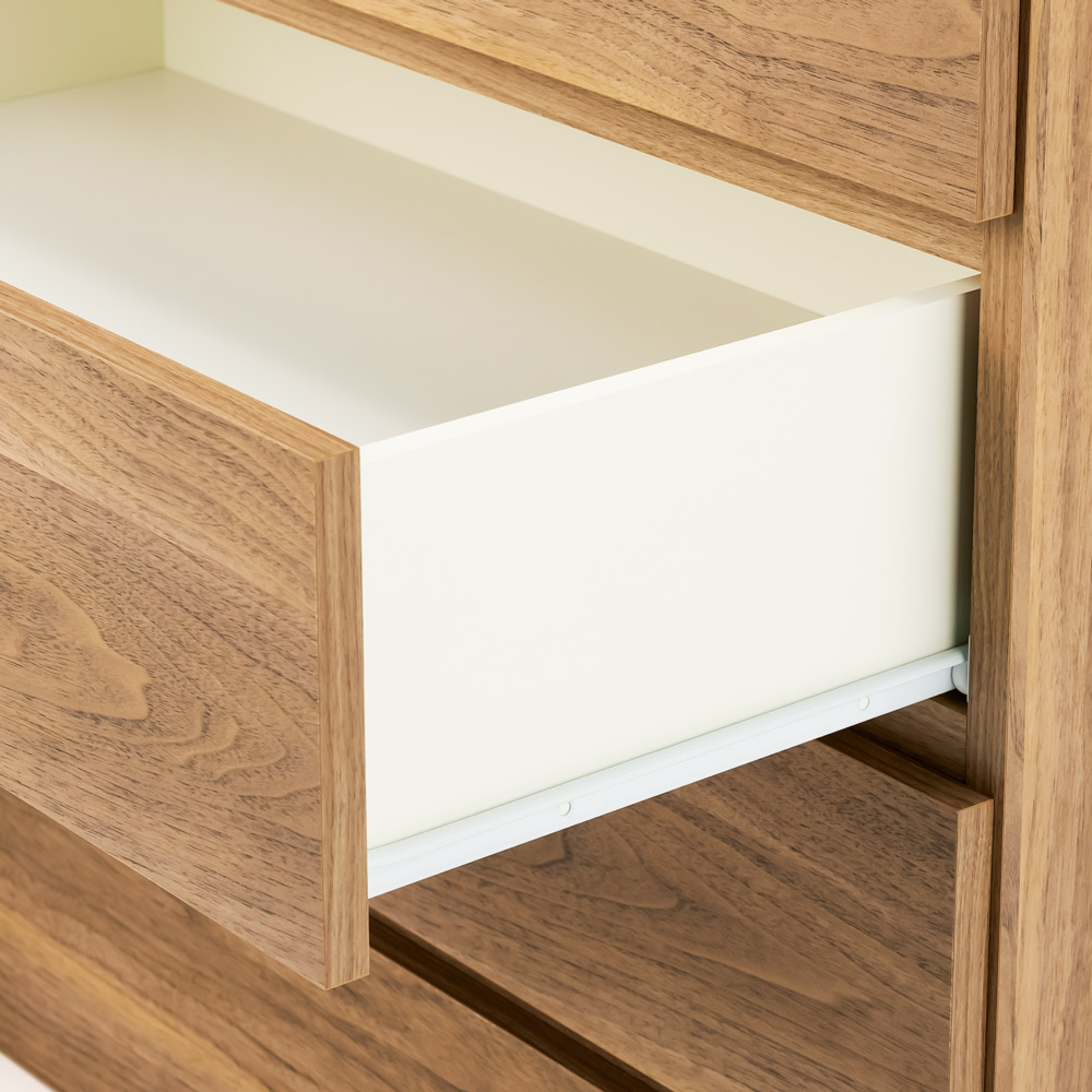 移動がしやすく、見た目もスマートな隠しキャスター付きの衣類チェスト。幅・奥行・高さが選べ、スペースに合わせて設置できます。北欧風の外観も魅力!自由にレイアウトできて、模様替えも手軽に!●隠しキャスター付きなので、お掃除や模様替えの際の移動がスムーズです。●簡単に移動できるから「チェストの裏をマメに掃除したい」「たまに配置を変えて気分転換したい」という方にもおすすめ。●家族構成の変化などによって、設置するお部屋を簡単に変えることができるのも魅力です。●取っ手や飾りのないシンプルなルックスで、どんな空間にもなじみます。●背面は化粧仕上げなので、お部屋の仕切りとしても使用できます。●色はシックな色合いの(ア)ブラウン、清楚なイメージの(イ)ホワイト、風合いのよい木目調の(ウ)ナチュラルをご用意。お部屋の雰囲気に合わせて選べます。設置スペースに合わせて選べる12サイズをご用意●幅は75cmと90cm、奥行は45cmと60cm、高さは65cm(引き出し3段)・85cm(引き出し4段)・105cm(引き出し5段)の計12サイズ。●サイズ違いを組み合わせても統一感があり、お部屋がすっきりとした印象に。●引き出しは全段スライドレール付きで開閉がスムーズ。奥にしまった衣類も取り出しやすい仕様です。リビングはもちろん、寝室やクローゼット内でも活躍●キャスターが外から見えないので、簡単に移動できるのに普通のチェストのようなすっきりした見た目です。●隠しキャスターは前輪にストッパー(2個)付きで、しっかりと固定できます。●リビングルームや寝室、和室にもなじむ美しい佇まいです。●「クローゼットや押入れで使う収納用品もデザインにこだわりたい」という方にもご満足いただけるルックスです。●奥行45cmタイプはクローゼットにも収まり、内部でスムーズに移動できるから、お掃除もラク。たたんだ衣類が横1列にすっきり収まります(引き出し奥行内寸37cm)。奥行60cmタイプは押入れや深めのクローゼットにぴったりで、収納力も抜群。たたんだ衣類が前後2列にたっぷり収まります(引き出し奥行内寸47cm)。●このページでご購入できるのは奥行45cmタイプです。丁寧な仕上げが光る、安心の国産家具●日本の熟練の家具職人が、一点一点丁寧に仕上げている日本製の家具です。●長く使うものなので、こだわり抜かれた高品質をお楽しみください。●国内工場で丁寧に作られた日本製です。●組み立て不要の完成品。届いたらすぐにお使いいただけます。シリーズ商品のご案内収納量でも奥行が選べる隠しキャスター付きチェストは以下のシリーズ商品がございます。・3段・高さ65cm幅75cm奥行45cm・4段・高さ85cm幅75cm奥行45cm・5段・高さ105cm幅75cm奥行45cm・3段・高さ65cm幅90cm奥行45cm・4段・高さ85cm幅90cm奥行45cm・5段・高さ105cm幅90cm奥行45cm・3段・高さ65cm幅75cm奥行60cm・4段・高さ85cm幅75cm奥行60cm・5段・高さ105cm幅75cm奥行60cm・3段・高さ65cm幅90cm奥行60cm・4段・高さ85cm幅90cm奥行60cm・5段・高さ105cm幅90cm奥行60cm