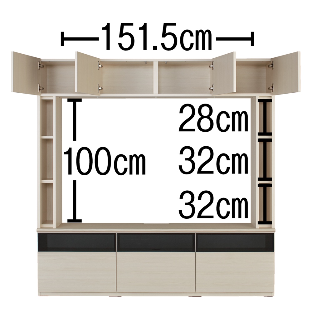 [日本製][完成品]壁面を活かしてお部屋丸ごとスッキリ片付く!奥行35cmの薄型タイプ。壁掛けテレビ設置済みのお部屋でも、テレビ周りに増設できる壁面収納シリーズがデビュー!まるで備え付けのような完成度の高さも魅力。壁掛けテレビ設置済みでも、その周りに収納を作れる壁面収納シリーズが誕生しました!お家の悩みで挙げられることが多いのが「収納力不足問題」壁掛けテレビ派なのでテレビ台は要らないけど、収納は足りない。。といった方のお悩みに応えるべく、背板の無いテレビ周り収納を中心に、造りつけのような天井ピッタリサイズが実現する壁面収納シリーズを開発しました!【POINT 1】細部にこだわったアイデア満載の機能・つくり●テレビ台は背板オープン仕様壁掛けテレビ設置済みの家庭でも収納増設できるよう、背板オープン仕様になっています。お手持ちのテレビサイズ、設置位置に合わせて購入いただけるように複数サイズ取り揃えました。デッキ収納部の背面も、配線しやすいようオープン仕様になっています。●スッキリまとめて配線できるコード穴各アイテム同士は配線穴を通して内部で配線ができ、側面から外部のコンセント電源に繋げられます。テレビやデッキ、パソコンやプリンターはもちろん、掃除機を充電しながらしまうこともできます。●棚板は3cm間隔で調整可能収納物に合わせて細かく調整できるよう、棚板の間隔は3cmピッチ。もったいない空間が生まれない、効率収納&大量収納を叶えます。●アイテム同士の上下・左右連結複数の収納を並べたときにすき間が生じてしまったら、せっかくの家具が台無しに。アイテム同士がぴったりと設置できるように、ジョイントネジで上下連結と左右連結できます。●扉は押すだけ簡単のプッシュ式すべての扉は軽い力で押すだけで開閉できるマグネットのプッシュ式を使用しています。●引き出しにはらくらく引けるレールを引出し付きタイプは、ストレスなく開け閉めできるようにレールを取り付けました。●天板のポストフォーム加工TV台の天板には、天板前の継ぎ目を隠す曲面の加工を施しました。天板の全面が柔らかなアーチ曲線のため、高級感ある仕上がりになっています。【POINT 2】123アイテムから選べる商品ラインナップ収納のタイプ・サイズ・カラーの組み合わせで、123種類と豊富なアイテム数をご用意したので、設置する部屋の雰囲気や収納したいものに合わせてお好みで選択いただけます。●収納庫のタイプ・扉タイプ…フラット扉を開けると内部は収納棚になっている一番定番の型になります。・段違い棚タイプ…棚板が前後で分割しているので、無駄なスペースなく効率的に収納できます。・背板オープンタイプ…壁のコンセントを隠さず使用できるタイプになります。●テレビ台のタイプ【幅サイズ】120/155/180cm【テレビ台天板までの高さ】42/52/62/72/82cmお手持ちのテレビサイズや、テレビ設置位置に合わせてお選びください。対応テレビサイズ目安:幅120=〜37V、幅155=〜49V、幅180=〜60V●上置き収納・上置き…各収納庫とテレビ台の上に設置できる、天井までの空間を利用した収納です。 まるで備え付け収納のような、設置したい場所にぴったりを実現するオーダー家具です。 上置きは、高さを26〜90cmの間で1cm単位でオーダーすることができます。 ※対応できる天井高さは、208cm〜272cmまでになるのでご注意ください。○選べるおしゃれな3色のカラー展開・(ア)ホワイトは、お部屋を選ばない透明感のある爽やかさが魅力です。 シンプルでモダンなリビングにぴったりですが、清潔感あるキッチンインテリアにもお勧め。・(イ)ナチュラルは、美しい木目柄が印象的な、明るさと優しさを持ち合わせた色味になります。 人気の北欧風スタイルやナチュラルモダンなインテリアと空間にマッチします。・(ウ)ダークブラウンは、落ち着いた天然木調が印象的。大人のシックなインテリアによく合います。 プライベートルームや書斎で書棚使いとしても重厚感がありおすすめです。