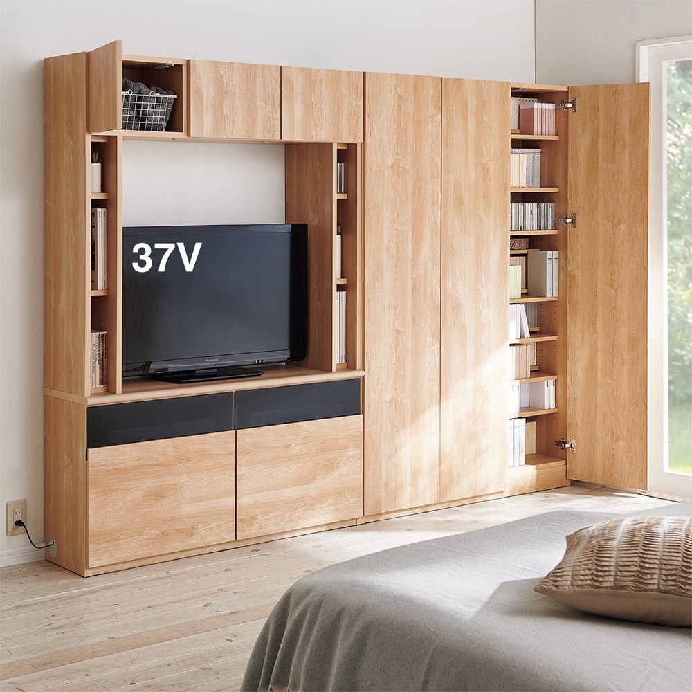 [日本製][完成品]壁面を活かしてお部屋丸ごとスッキリ片付く!奥行35cmの薄型タイプ。壁掛けテレビ設置済みのお部屋でも、テレビ周りに増設できる壁面収納シリーズがデビュー!まるで備え付けのような完成度の高さも魅力。