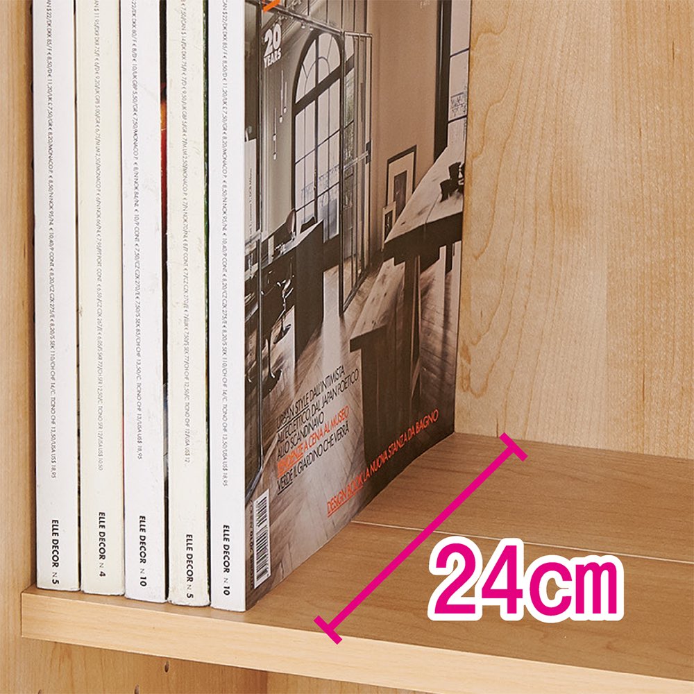 棚の高さを揃えれば雑誌の収納にも。