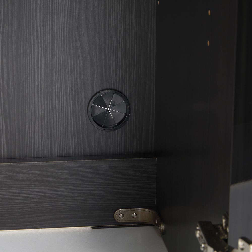 • 同シリーズの冷蔵庫上収納とセットでお使いいただくと、お部屋の統一感アップ。 (イ)ブラック木目 ※写真は幅50奥行44cmタイプ