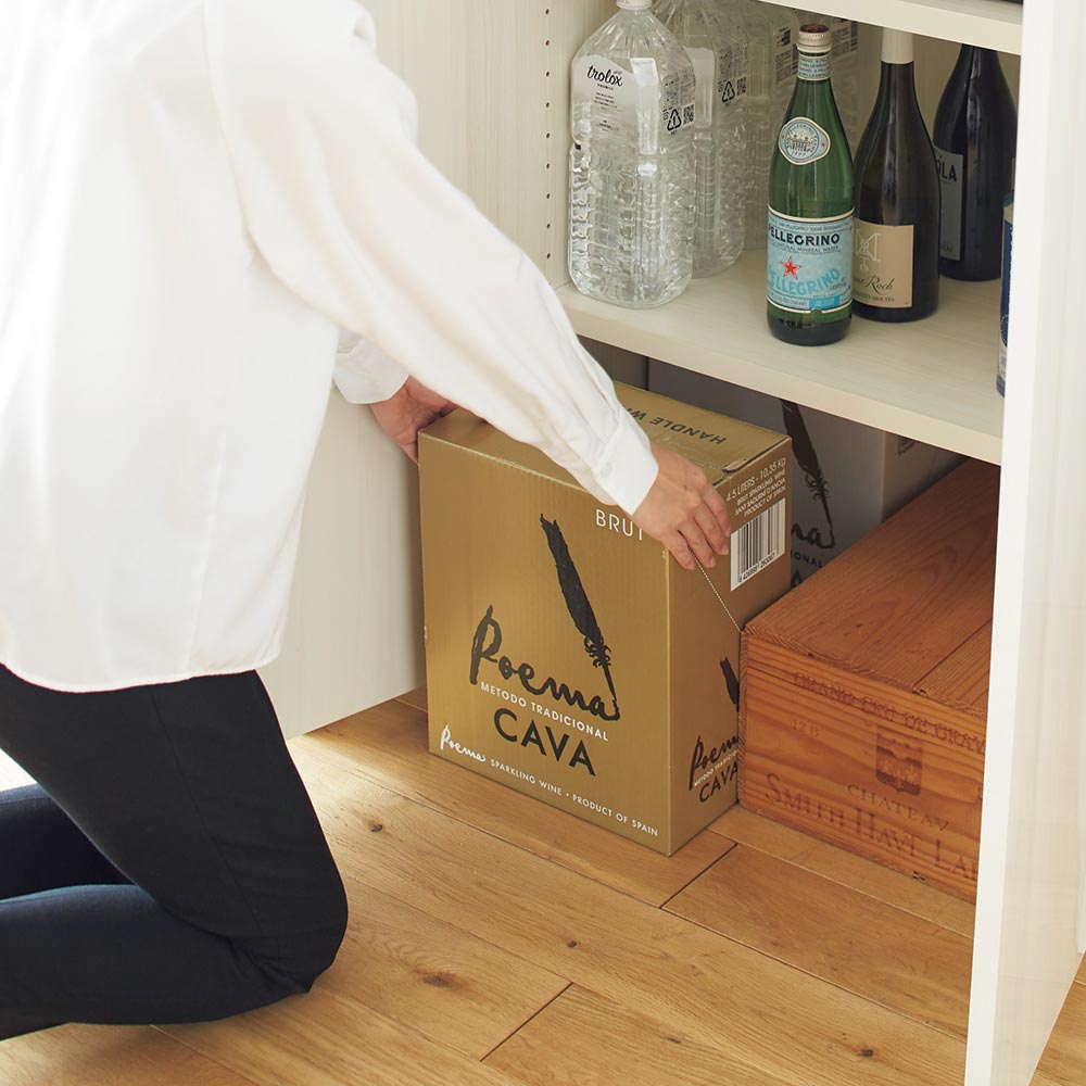 そこで、ストックしたものを大量収納でき、管理のしやすいパントリー収納を企画いたしました。