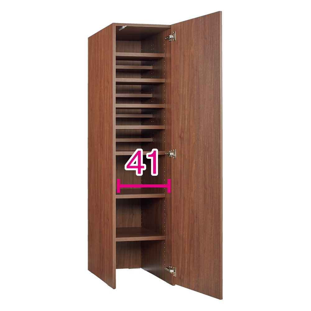 コーディネート例(ウ)ダークブラウン 床から固定棚まで90cmの高さがあり掃除機なども収納可能。 ※写真は天井高さ250cmで撮影 ※写真は本体幅45奥行45cm(上置き設置)