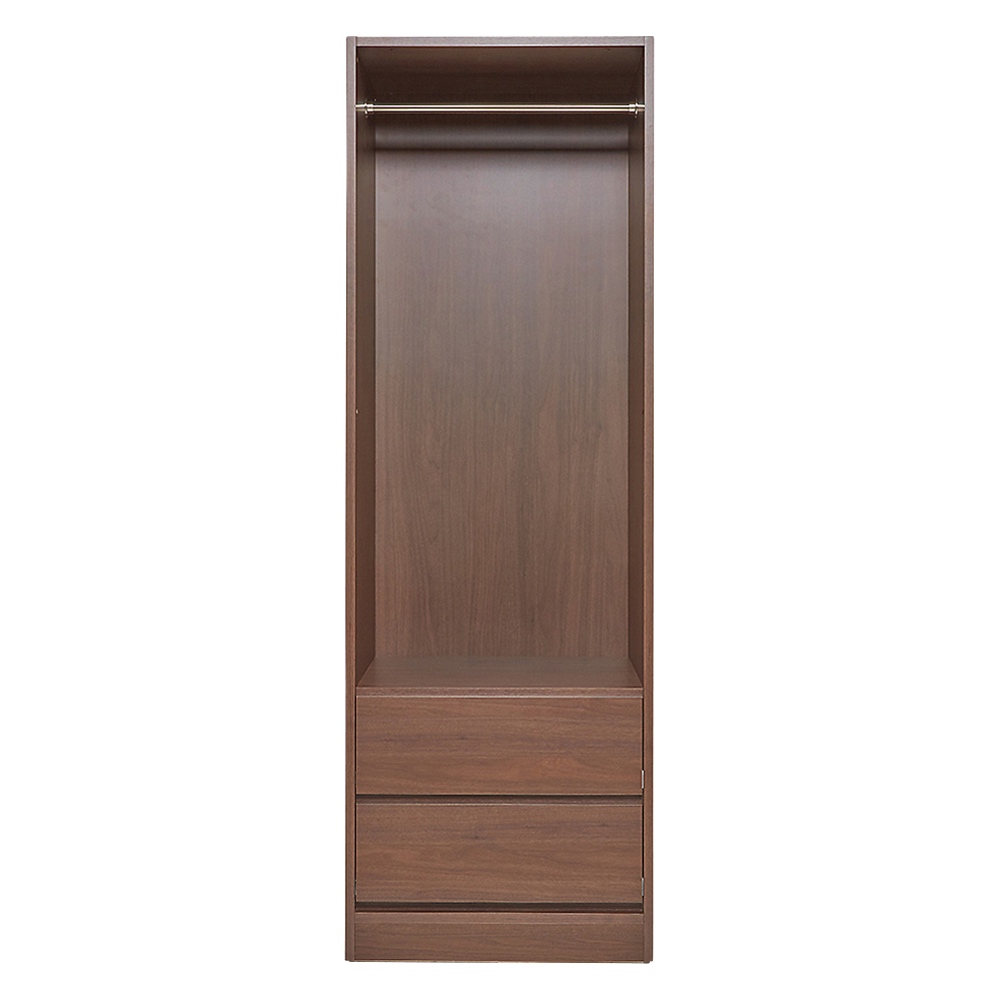 奥行と収納タイプが選べ、ワードローブと間仕切り機能の1台2役の間仕切り収納シリーズ。上置きを設置すれば天井までの大量収納が叶います。左からハンガー2段 幅80cm、棚+引き出し幅60cm、ハンガー1段+引き出し幅60cm(いずれも奥行54cm、ダークブラウン)収納と間仕切りの1台2役!お部屋の用途が広がりますワードローブと間仕切り機能、1台2役の間仕切り収納シリーズ。空間を間仕切りながら、大容量収納まで叶えてくれます。幅・奥行・収納タイプが選べ、上置きを設置すれば天井までのスペースも活用。まるで造り付けのような収納空間が完成します。お届け商品 ※右:内部の構造図(単位cm)ハンガー+引出しタイプ 幅80cm奥行54cm1段のハンガー収納と引き出し2杯のタイプ。掛ける収納・たたむ収納の使い分けができます。左から 上下ハンガー2段(幅80cm)、ハンガー+引出し(幅80cm)、棚+引出し(幅60cm)選べる収納タイプ・サイズ使い勝手や収納物に応じて、幅・収納タイプを選び、自由に組み合わせてお使いいただけます。 収納タイプは上下ハンガー2段タイプ、ハンガー+引出しタイプ、棚+引出しタイプの3種類、幅は60cm・80cmの2サイズをご用意。色はホワイト・ナチュラル・ダークブラウンの3色。お部屋のインテリアに合わせてお選びください。 ※お届け商品は「奥行54cm」タイプです奥行スリム&オープンタイプで省スペース扉のないオープンタイプで、開閉スペースが不要な省スペース設計です。 奥行は44cmと54cmの2サイズをご用意。お部屋に合わせてお選びください。奥行44cm:ジャケットの肩は少し出るけれど、十分な収納力。あまりスペースがなく、省スペースで使いたい方におすすめ。 奥行54cm:衣類をすっぽり隠すように収納できるので、お部屋がよりスッキリ見えます。出し入れラクな引き出し引き出しは、スムーズに動くスライドレール式。上置き使用例突っ張り式の上置きで収納力UP収納力をUPしながら、本体をしっかりと固定する「突っ張り式上置き(別売)」と組み合わせて使うことができます。上置きはご自宅の天井の高さに応じて、1cm単位でオーダー可能。 上置きとの組合せ次第で、天井高208〜272cmに対応します。 コーディネート例:ホワイト(収納面)お部屋を広く演出するホワイト壁馴染みが良く、大きな家具でも圧迫感が出にくいのが特徴。コーディネート例:ダークブラウン(間仕切り面)高級感のあるダークブラウンまるでウォルナット材のように、落ち着いた印象の木目柄。モダンなスタイルにピッタリのデザイン。 リビングを仕切って、片側をベッドスペースにすることも。コーディネート例:ナチュラル(収納面)柔らかな印象のナチュラル綺麗な木目柄で、北欧風のナチュラル色。インテリアを選ばず、どんなスタイルにも合わせやすいのがポイントです。ふたりで部屋をシェアしながら、収納も確保。