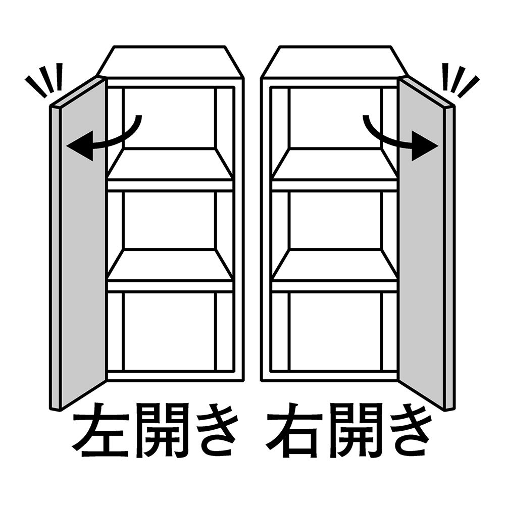 幅39cmタイプは扉の開きを選べます。右開き・左開きのいずれかをご指定ください。