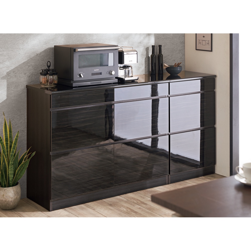 部屋の主役顔になるスタイリッシュなキッチンカウンターです。◆モダンな印象の光沢木目がおしゃれなキッチンカウンターです。