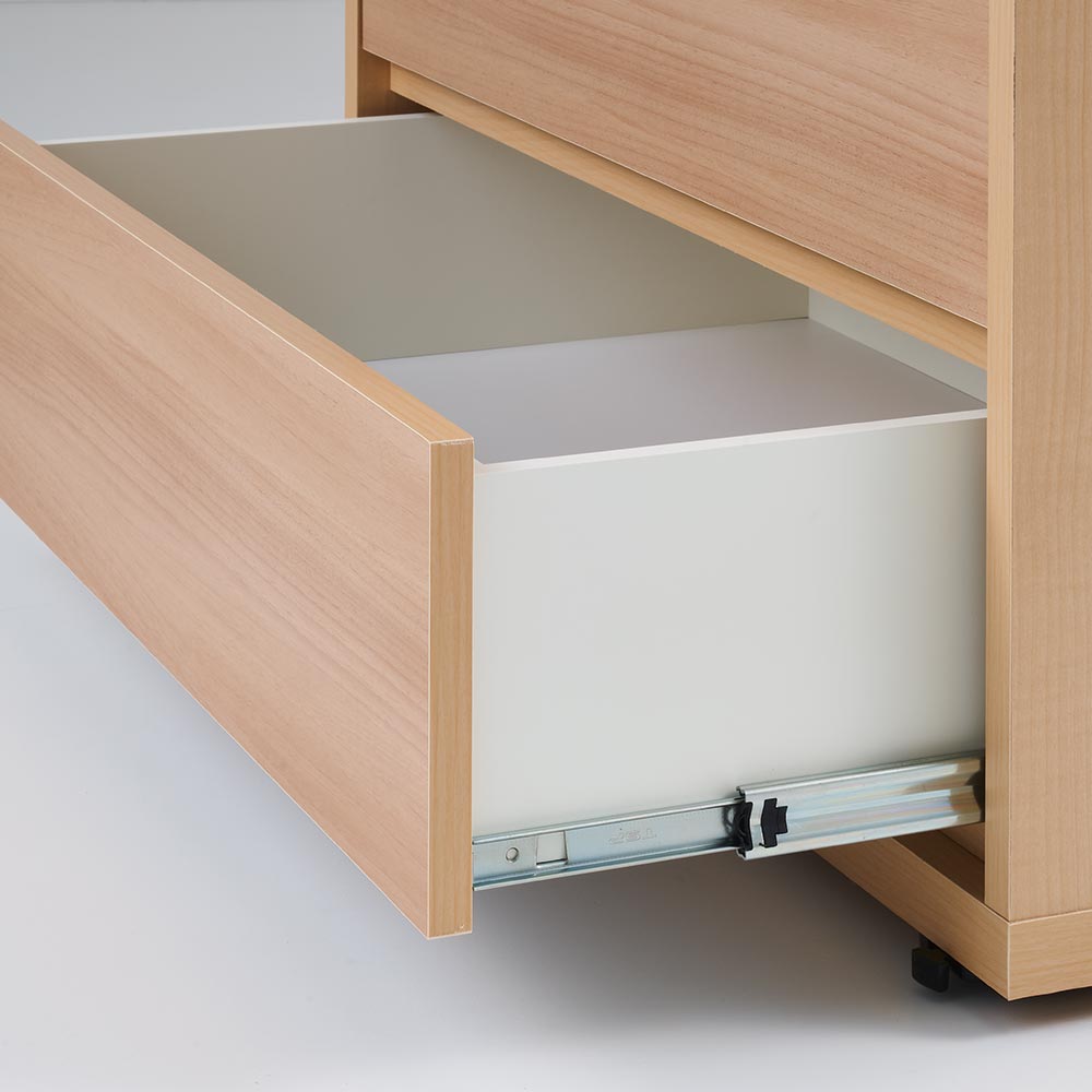 引き出しはフルスライドレール付きで、奥まで開閉スムーズ。 ※引き出しは最大50cm出てきます ※引き出し下から床まで約6cm