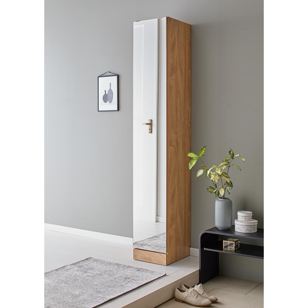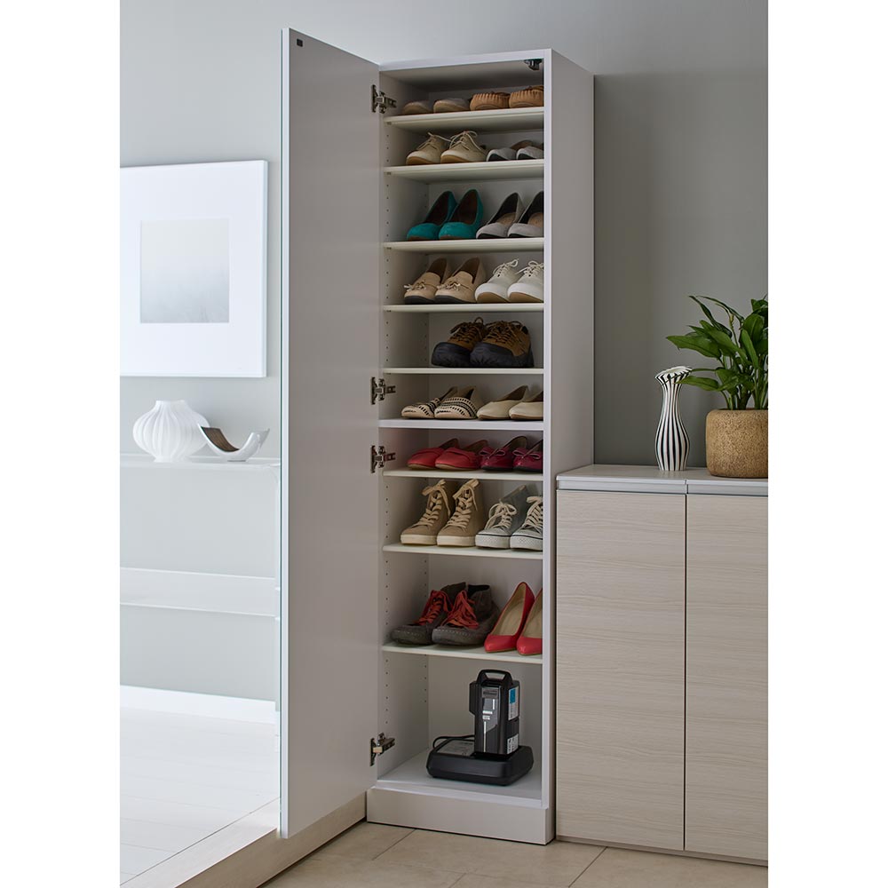 どの靴を合わせようか、全身ミラーでコーディネートチェック。シンプルでミラーとの組み合わせは、合わせやすく圧迫感の少ないデザインになっています。幅木避けもついているので壁にぴったり設置できます。●幅木をよけて壁に設置できます。(7.5×1.5cm)●棚板の色は本体:ホワイト・ナチュラルはホワイト、本体:グレーウォッシュはブラウンです。●コード通し穴があるので、充電器を隠しながら充電することができます。●完成品なのですぐご使用になれます。●日本製