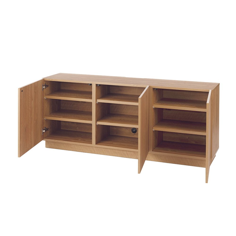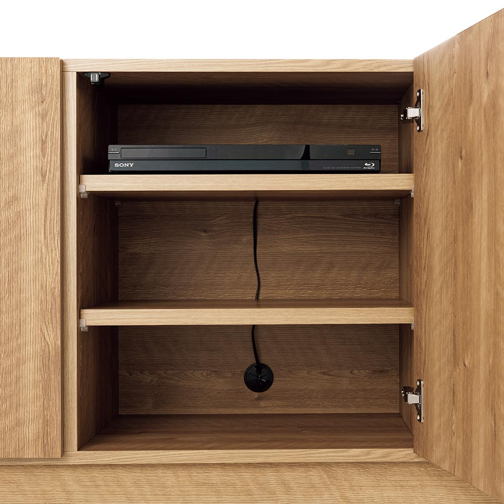 扉内には3cm間隔で高さ調節できる可動棚付き。食器や書籍、衣類やストック用品などの収納に合わせて高さ調節できます。