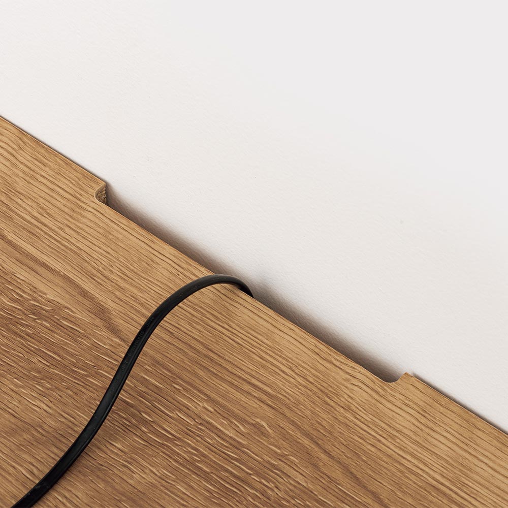 可動棚の奥からコードが通せます。背面にコード穴もあり、扉内のどこからでも配線ができる仕様。