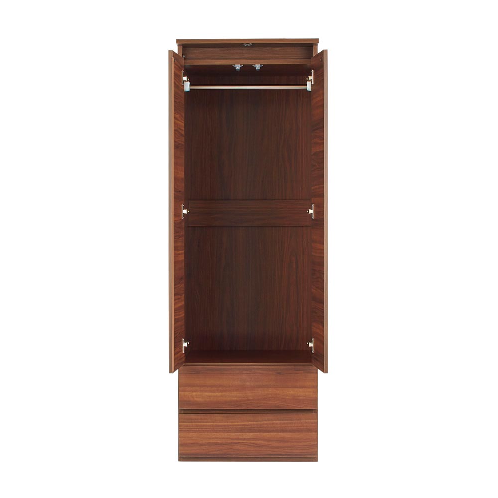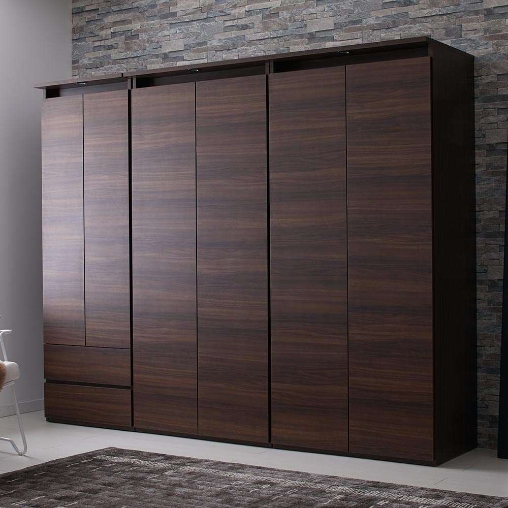 落ち着いた雰囲気をたたえた天然木調の木目がLEDライトに映えて、お部屋に成熟した華やぎを放ちます。輝くLEDライトがお部屋の演出にも一役天板に備えたLEDのダウンライトが、端正な木目の前扉を幻想的に照らします。LEDのダウンライトが、間接照明のようにふんわりと光の陰影を演出。暗くなりがちな衣裳部屋を明るく照らし、コーディネートの際にも便利。点灯スイッチでLEDライトをON/OFFできます。お好みで組み合わせができる2段クローゼットハンガー・ブレザータイプ・棚(収納庫)・チェストの多彩なラインナップから選べるロッカータンスシリーズ。組み合わせ次第で、壁一面に大容量のクローゼット収納が完成します。並べて設置すれば、見た目も造りつけのような美しさに。お出かけ前の必需品が整理整頓できれば、時短にもつながります。お手入れがしやすく、インテリアに馴染む表面材を使用前板にはキズに強く、汚れてもお手入れが楽な素材を使用しています。表面材の仕様は、リビングや寝室・衣裳部屋などを格調高く演出する木目調仕上げ。安心と信頼の職人技が光る国産の収納家具熟練の家具職人がひとつずつ丁寧に仕上げたワンランク上の日本製ワードローブです。細部の丁寧な仕上がりなど日本製の高品質な衣類収納ハンガーで快適な暮らしを。