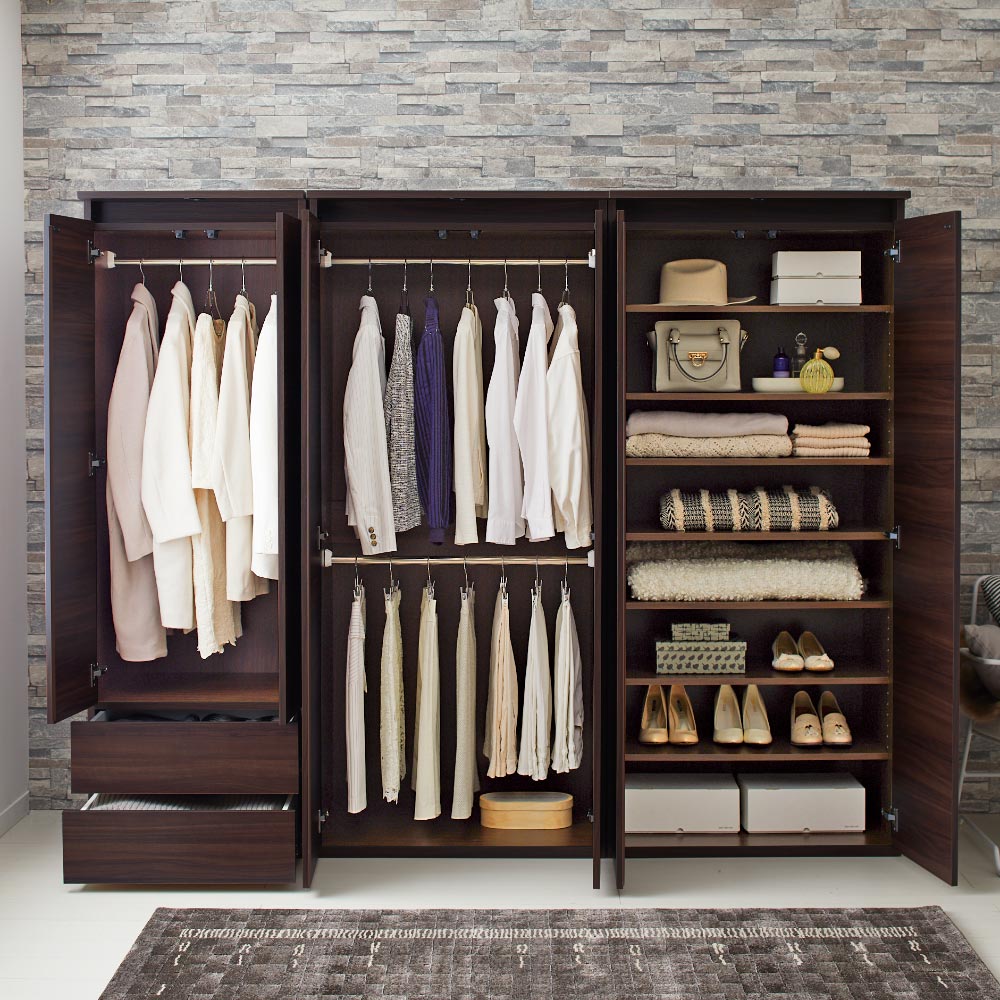 落ち着いた雰囲気をたたえた天然木調の木目がLEDライトに映えて、お部屋に成熟した華やぎを放ちます。輝くLEDライトがお部屋の演出にも一役天板に備えたLEDのダウンライトが、端正な木目の前扉を幻想的に照らします。LEDのダウンライトが、間接照明のようにふんわりと光の陰影を演出。暗くなりがちな衣裳部屋を明るく照らし、コーディネートの際にも便利。点灯スイッチでLEDライトをON/OFFできます。お好みで組み合わせができる2段クローゼットハンガー・ブレザータイプ・棚(収納庫)・チェストの多彩なラインナップから選べるロッカータンスシリーズ。組み合わせ次第で、壁一面に大容量のクローゼット収納が完成します。並べて設置すれば、見た目も造りつけのような美しさに。お出かけ前の必需品が整理整頓できれば、時短にもつながります。お手入れがしやすく、インテリアに馴染む表面材を使用前板にはキズに強く、汚れてもお手入れが楽な素材を使用しています。表面材の仕様は、リビングや寝室・衣裳部屋などを格調高く演出する木目調仕上げ。安心と信頼の職人技が光る国産の収納家具熟練の家具職人がひとつずつ丁寧に仕上げたワンランク上の日本製ワードローブです。細部の丁寧な仕上がりなど日本製の高品質な衣類収納ハンガーで快適な暮らしを。