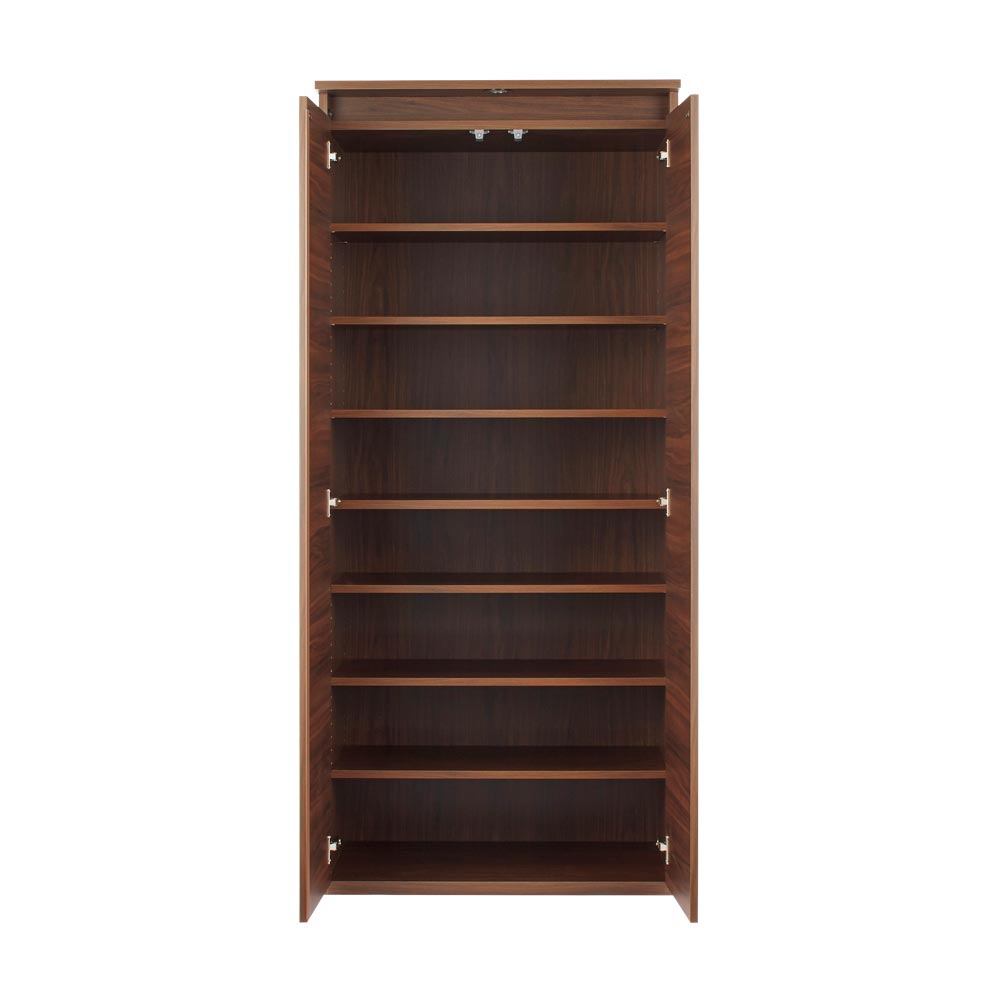 (イ)ブラウン 扉オープン時 可動棚は中央部の固定棚を挟んで上下とも3cm刻み15段階調節