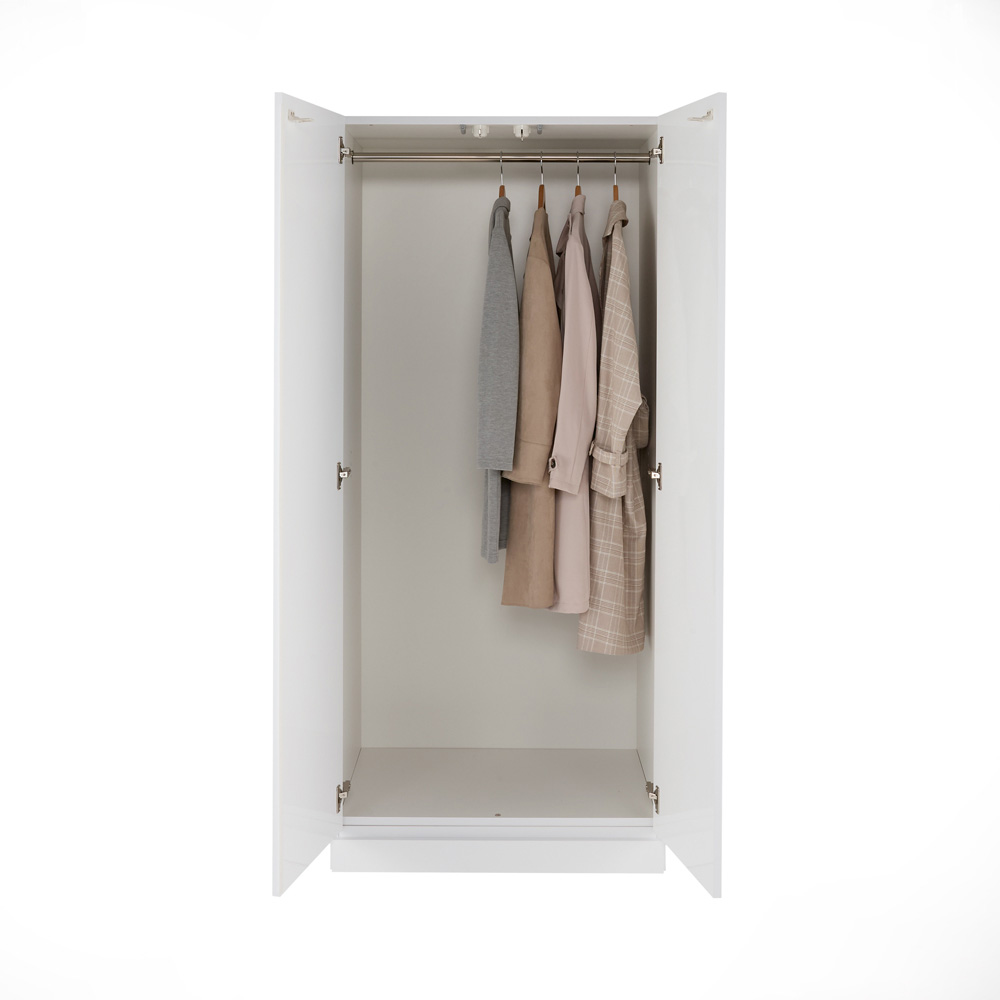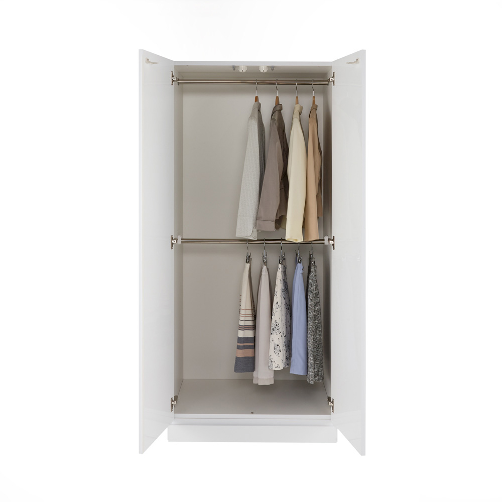 (ア)ホワイト 中段のハンガーバーを外せばロング丈も収納可能。