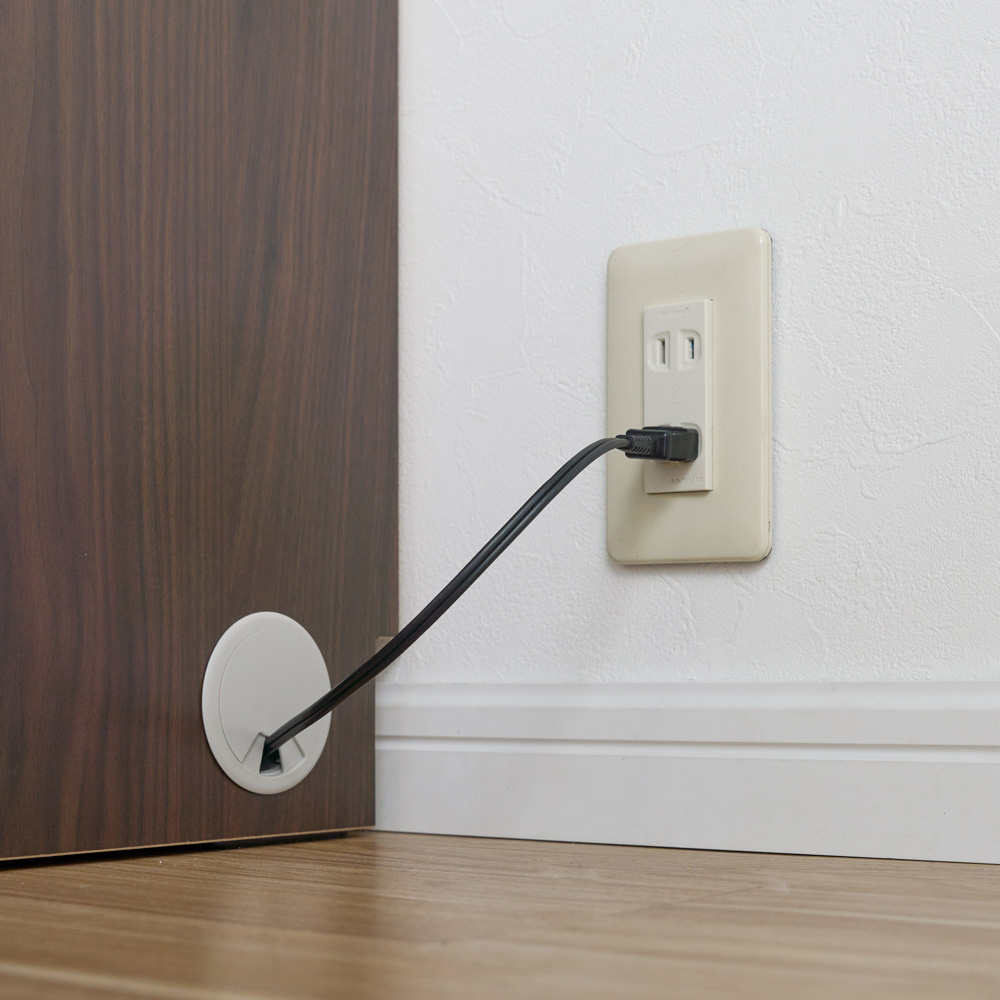 コード類は配線穴で設置後の内部配線が可能。