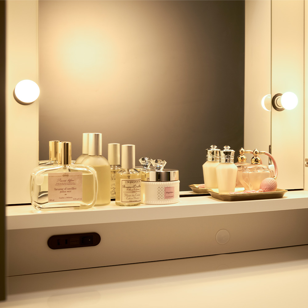 両サイドのLEDライトで顔を明るく照らすので、優雅な気分で身支度を楽しめます。