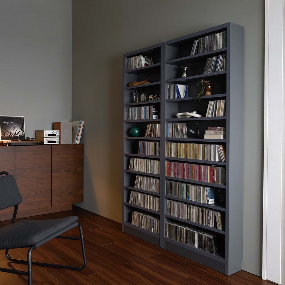コレクションした大量のCDを、床から天井までずらりと壁一面へ。まるでショップのような眺めは圧巻です。CD収納に特化したCDライブラリーシリーズ。収納部はCDサイズに合わせた仕様になり棚は全て固定棚になります。CD枚数によって本体を幅40・60・70cmの3タイプよりお選びいただけます。【収納の目安】●幅40cmタイプ:オープン部1ヵ所に30枚収納。全部で300枚収納が可能です。●幅60cmタイプ:オープン部1ヵ所に49枚収納。全部で490枚収納が可能です。●幅70cmタイプ:オープン部1ヵ所に58枚収納。全部で580枚収納が可能です。※CDケースのサイズは幅14.2×高さ12.5×厚さ1.1cmで計算※ご使用の際には必ず転倒防止バンドをご使用ください。奥行が薄型の為、前倒れの恐れがあります。