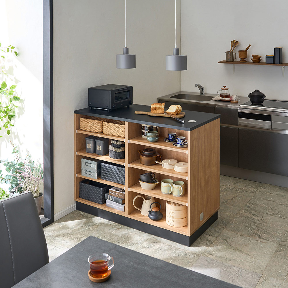 • (ウ)オーク/ブラック 置くだけで会話が弾むアイランドキッチンに。 ※写真は据え置きタイプ幅120cm高さ95cmです。