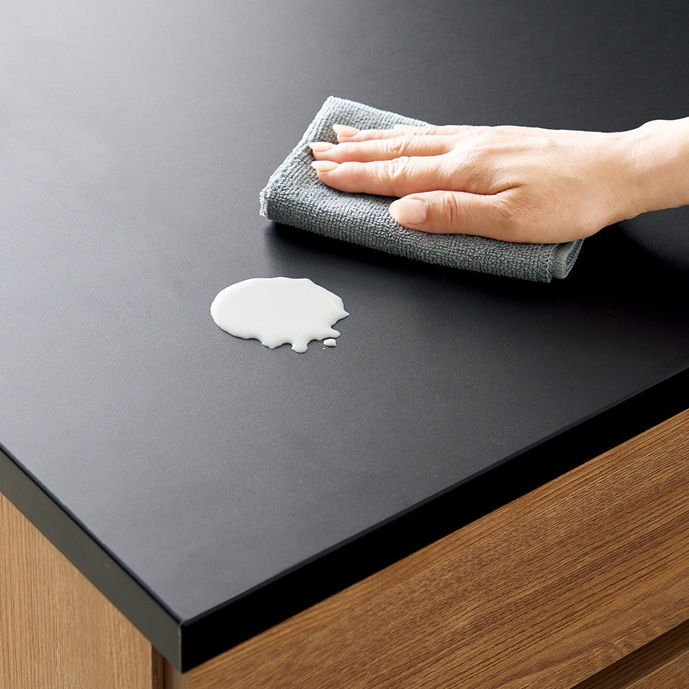 【天板】水や傷に強いメラミン素材で、調理の際の作業台としても安心。