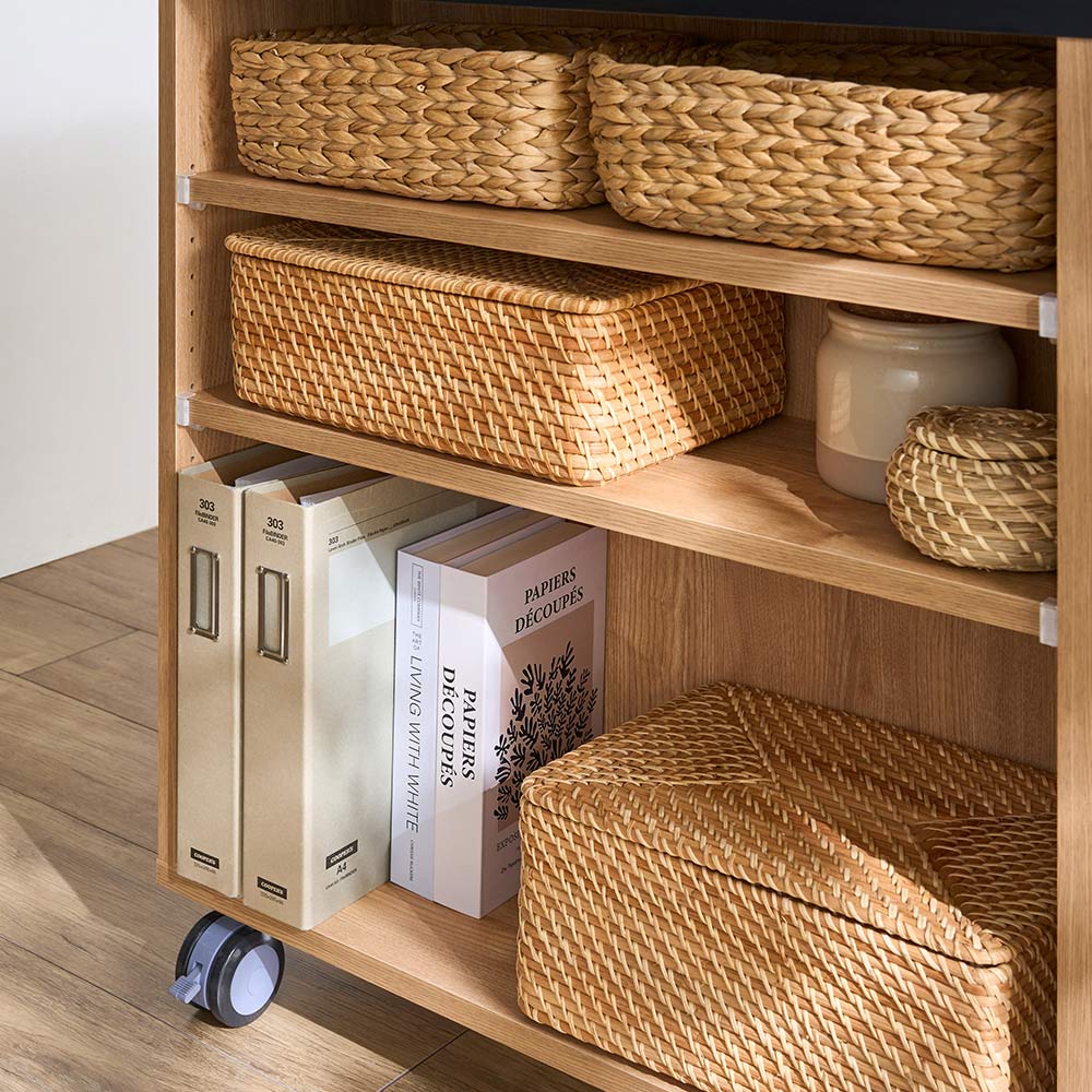 【引き出し側】(イ)ナチュラル 高さ80cm・高さ85cm・高さ90cmタイプは引き出し3段、高さ95cm・高さ100cmタイプは引き出しが4段になります。 ※写真は移動式キャスタータイプ幅120cm高さ90cmです。