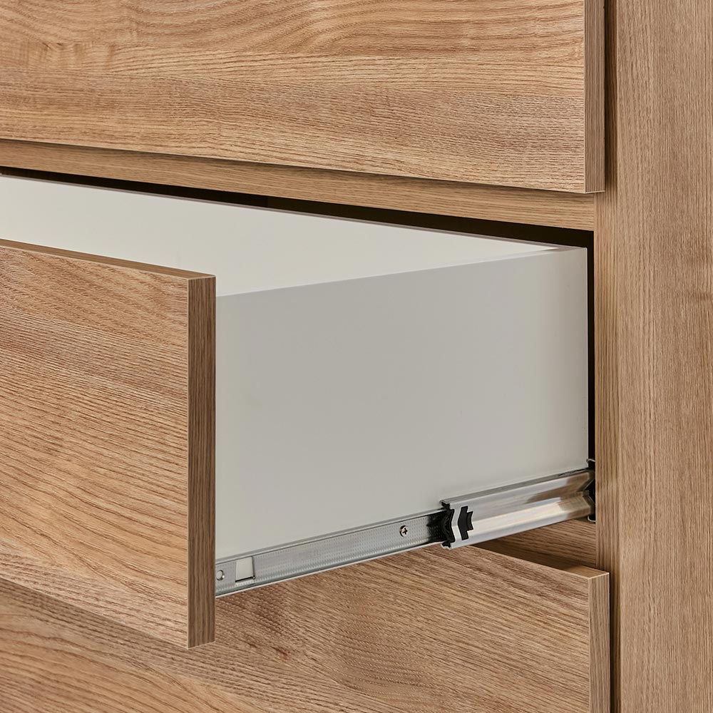 【引き出し側】引き出しは全段、軽い力で奥まで引き出せるフルスライドレール付きです。