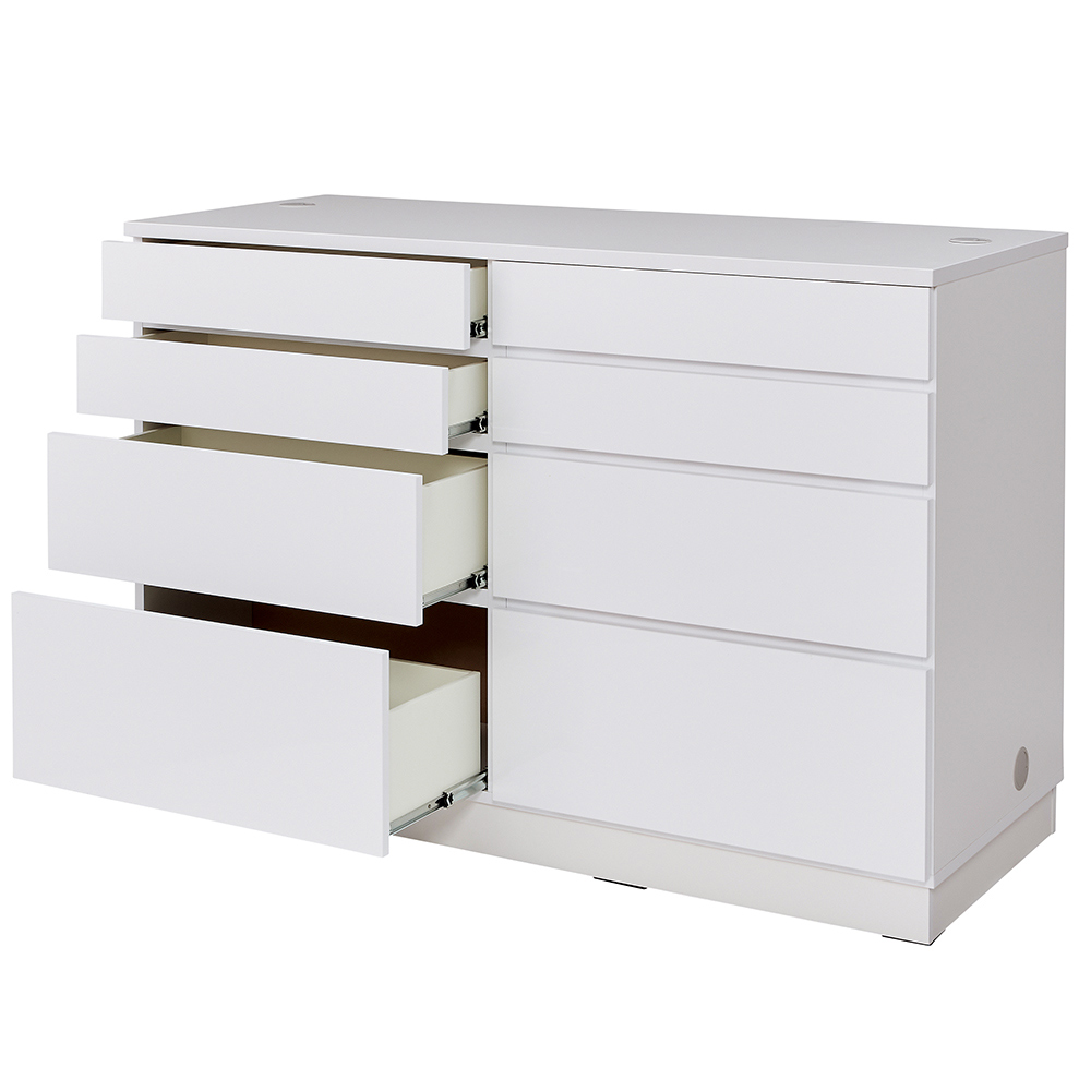 【引き出し側】引き出しは全段、軽い力で奥まで引き出せるフルスライドレール付きです。