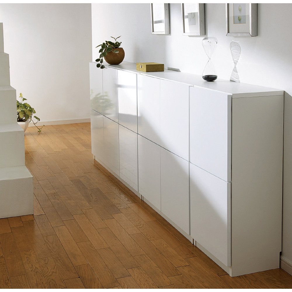 美しい光沢が透明感のある空間に。スクエアな扉もスタイリッシュ ≪組合せ例≫ ※写真はチェスト、収納庫幅80、収納庫幅120です。