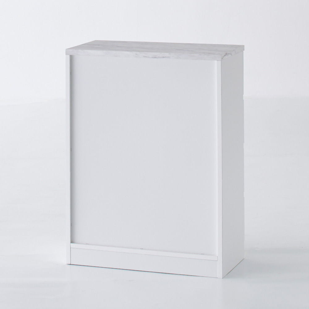 (ア)ホワイト天板アップ マットな質感のマーブル模様のメラミンシートを使用しています。