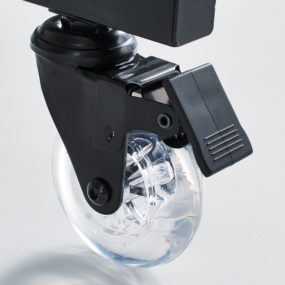 使いたい場所に軽く移動。スムーズな動きはもちろん、見た目にも美しいクリアなキャスター。