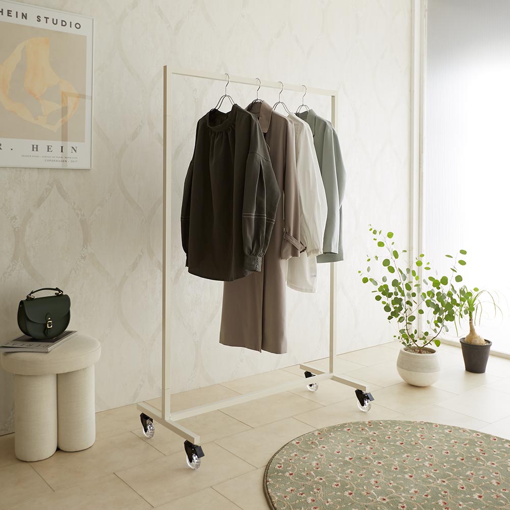 角パイプをスクエアに組んだシャープな見た目の頑丈設計ハンガー。総耐荷重約80kgで厚手のコートなど重たいものを大量に掛けたい方に。タンスの代わりにもなる一押しハンガーラックです。シャープなルックスでがっちり頑丈なハンガー。◆耐荷重80kgの頼もしさ。◆モダンな空間にフィットするスクエアデザイン。◆収納量に幅82cm・幅102cm・幅122cmの3サイズをご用意しました。見た目の良さと機能の両立にこだわった洗練デザイン。◆総耐荷重80kgの頑丈設計なので、冬物のコートもぎっしり掛けられます。◆角パイプをスクエアに組んだ、機能美を感じさせるシンプル&モダンデザイン。◆国産だからこそ出来る丁寧な溶接で、頑丈さとスマートな見た目を両立。頑丈キャスター付きで洋服を掛けたままでもラクラク移動ができます◆しっかり支えて、移動が楽にできるタフなキャスター付き。掃除など動かすときに役立ちます。◆スムーズな動きはもちろん、見た目にも美しいクリアのキャスターです。