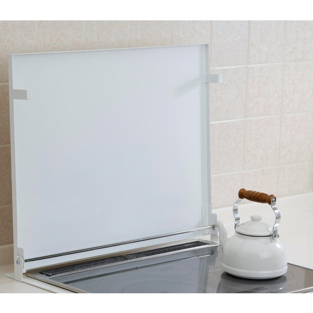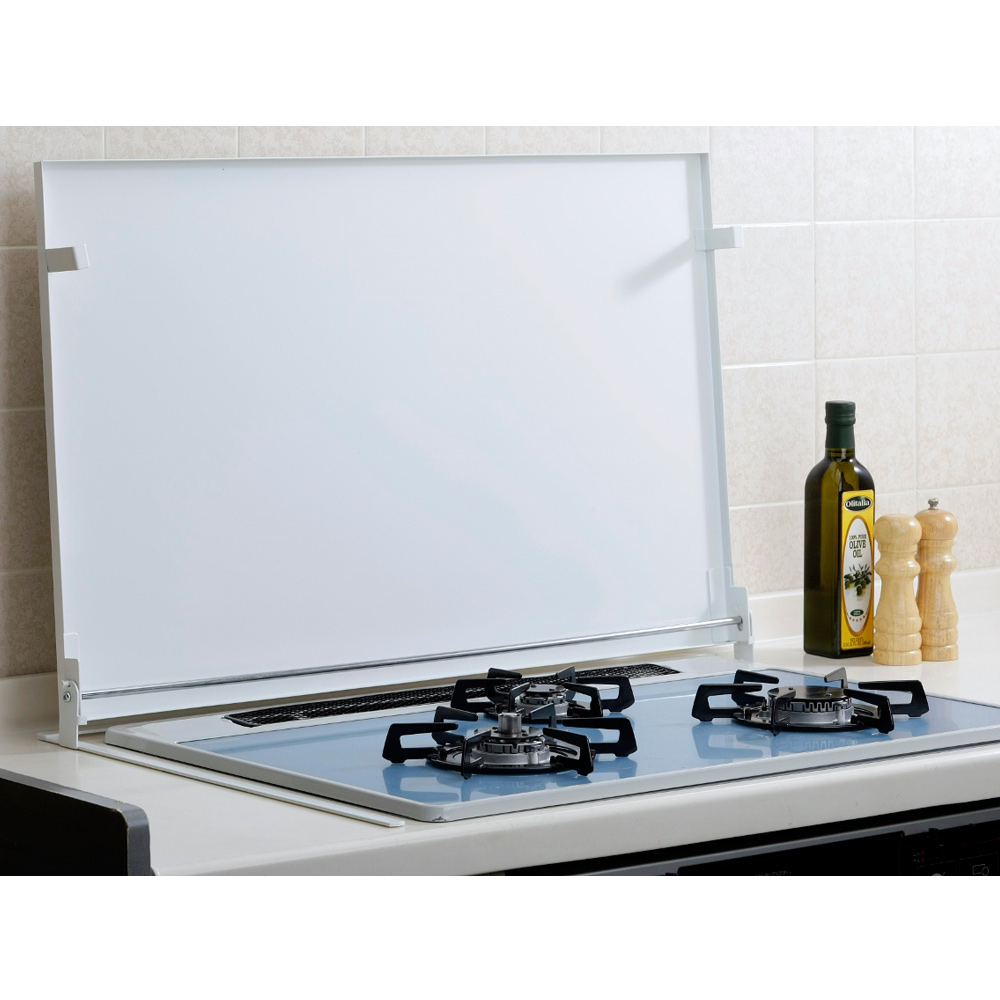 ちょっとした工夫でコンロ台を快適便利な作業台に!コンロ上が広々と使える作業スペ−スになり、使用中は油ハネガ−ドとしての役割も担う1台2役!●キッチンの作業スペースにお悩みの方に●コンロのスペースを有効活用し、作業効率が格段に上がるアイデア商品!●コンロ使用時はカバーを立てて使用。油ハネガードとして壁を油汚れから守ってくれます。また、立てた状態できっちりロックしておけるので、安心・安全にお使いいただけます。●コンロ未使用時はカバーを下ろして作業台やものの置き場所としてお使いいただけます。●急な来客などあった時には目隠しカバーとしての役割も担ってくれます。●カバー台の裏面には熱に強く剥がれにくい特殊テープを使用しており、置きたい場所にがっちり設置できます。また、接着力が衰えにくいテープでもあります。●天板部分の耐荷重は約5kgあり、調理道具、鍋、フライパン等でも問題なく置いておけます。●接地面から内寸幅として約6cmあり、ほとんどのコンロに対応できる仕様です。●新潟県の燕三条地区の職人がひとつひとつ丁寧に作り上げており、品質が非常にいいです。■幅75cmのコンロに対応。(ガスタイプ・IHタイプどちらも可)※立てるための奥行きが5cm程度必要です。※輸送時傷防止の為、半透明(ブルー)の保護シートが貼ってあります。剥がしてからご使用ください。※やかんや鍋等、熱い物は直接おかないでください。