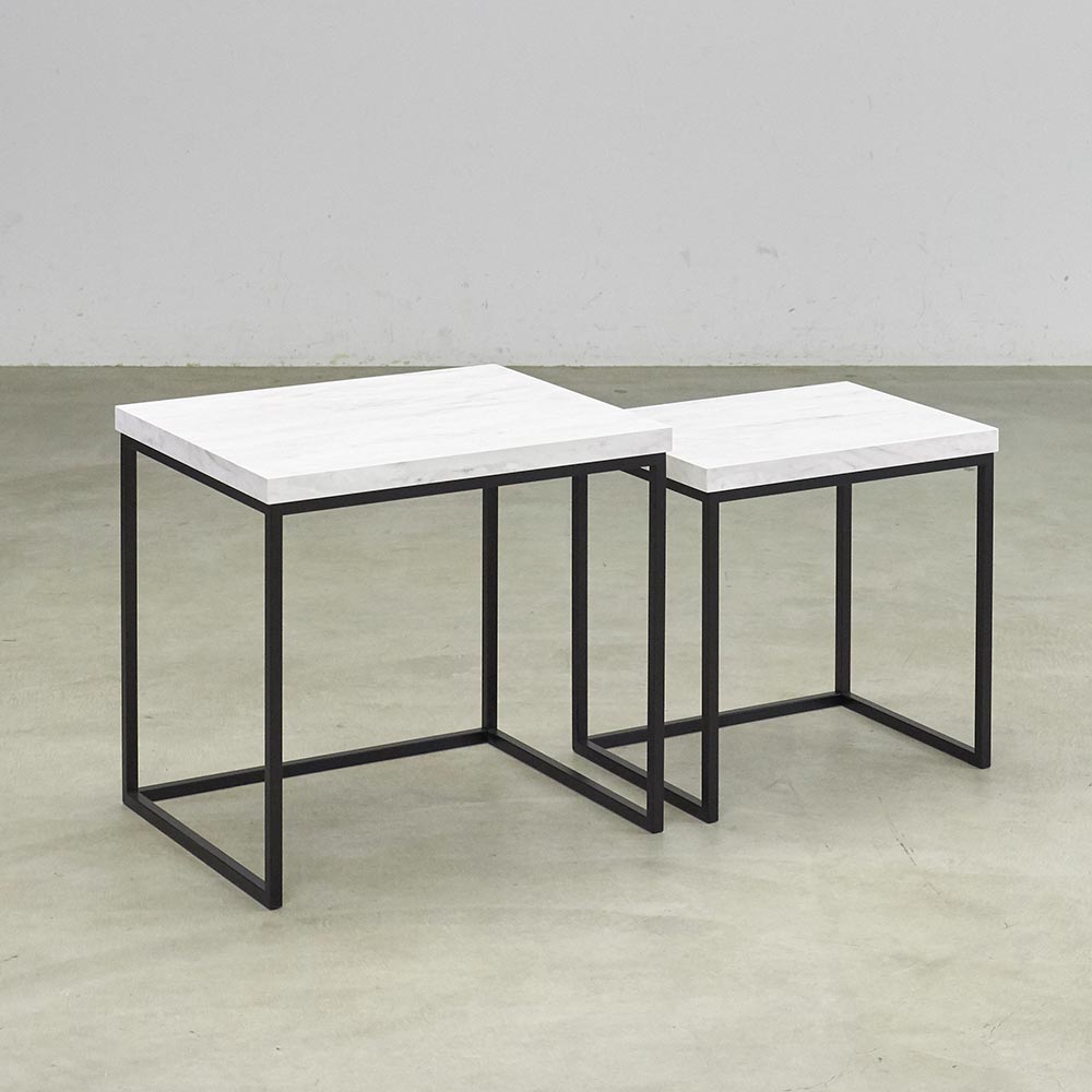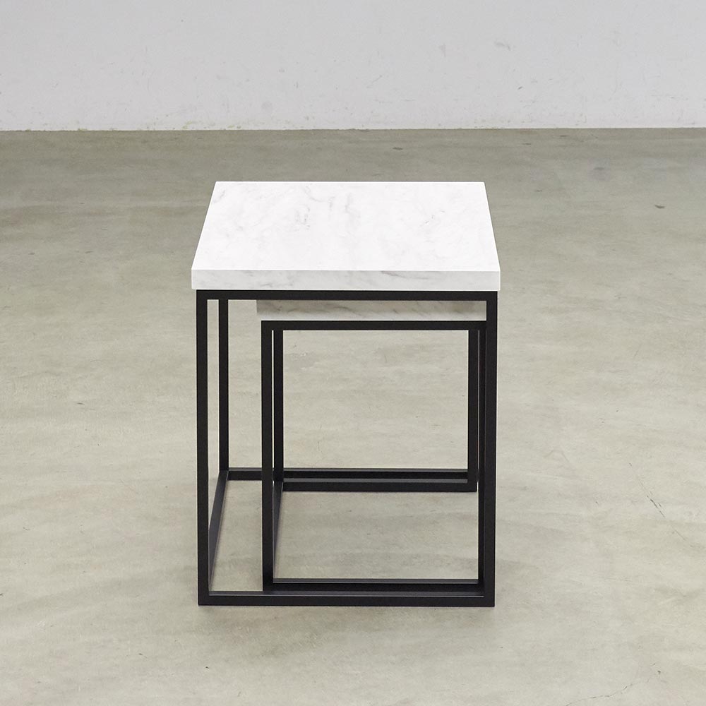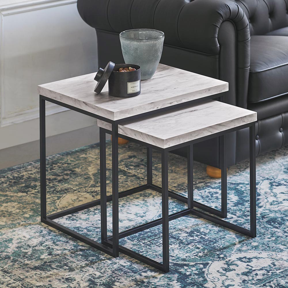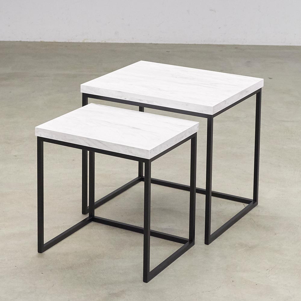 グラマラスな質感が美的空間へクラスアップ。気持ちも華やぐホワイトの大理石調天板を用いて、ネストテーブルに仕上げました。丁寧な作りと高級感あるボリュームが、リビングをより魅力的な空間へ。入れ子式だから、広げて・縮めて自由自在普段は重ねてコンパクト、必要な時は広々使える入れ子式。広げてワイドに、重ねてコンパクトに収納できるネストテーブルに仕上げました。ゲストが増えた際にもフレキシブルに対応。限られたスペースにもおすすめしたい、空間を有効活用するアイテムです。大小2点セットでお届けします。白と黒のコントラストがシックな輝きを添えてシンプルながら、石目調の天板とブラックスチール脚。2つの素材のコントラストがシックな輝きを添えます。お洒落でモダンな大理石調の天板が、印象的な空間を演出します。使い方もフレキシブル高さ大:51cm、小:45cm。ソファサイドやベッドサイドにちょうど良いサイズ。コーヒーテーブルとして、または寝室でリーディングライト置きとして。〜熟練の職人が丹精こめて生産しています〜熟練の家具職人がひとつずつ丁寧に仕上げたワンランク上の国産家具です。デザイン・仕様など細部に至るまでこだわりました。ハウススタイリングが自信を持ってお勧めする日本製のディノス家具です。届いたらすぐ使えるのが嬉しい完成品本体は組立不要。脚を取り付けたら届いたらすぐ使えるのが嬉しい完成品でお届けします。