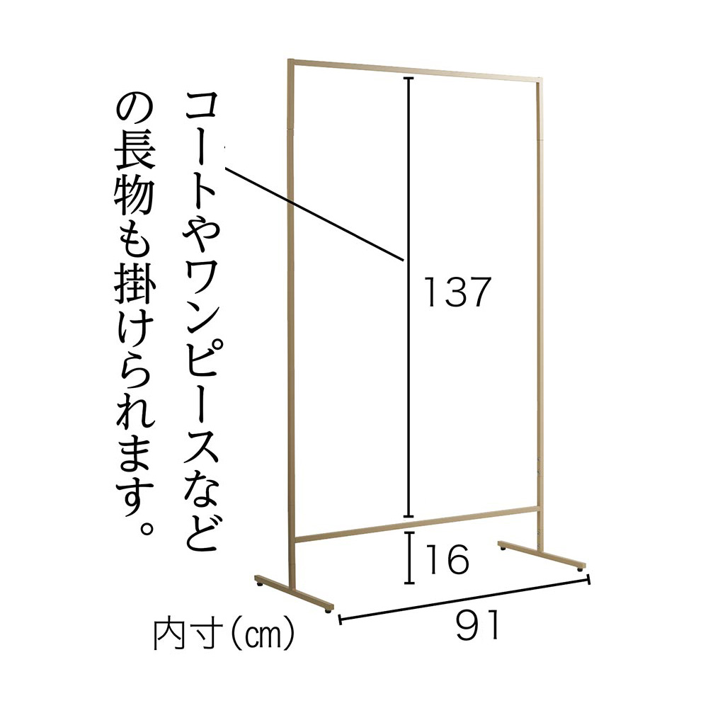 大人の女性にこそふさわしい、高感度なスリムハンガー。華奢なフレームと柔らかいベージュカラーが空間に上品になじんで、お気に入りの洋服を引き立てます。サロンやブティックにもお似合いの上品なハンガーです。コートやワンピースなどの長物も掛けられます。お部屋に上品に馴染んでくれる!柔らかなベージュのハンガーラック、つくりましたハンガーラックって意外と存在感があったり、白か黒のモノが多いですが、もっとシンプルで、淡色でまとめたお部屋にも馴染んでくれるようなハンガーラックを作りました!高感度な人の心をくすぐる柔らかいベージュカラーベージュインテリア好きにはたまらない、淡いベージュカラーに。マットな質感で落ち着いた印象で、リネンなど天然素材などとも好相性。上品で大人っぽい印象を持ちながら、どのようなインテリアや素材にも合わせやすいです。グレージュインテリアや韓国インテリア好きな方にもおすすめです。圧迫感なく空間に馴染む、華奢なフレーム16mmの細角パイプを使用し、シンプルなシルエットにこだわりました。華奢なフレームが空間に上品になじんで、お気に入りの洋服を引き立てます。メラミン焼付塗装で滑らかな触り心地もポイント。サロンやブティックにもお似合いの上品なハンガーです。細やかな気配りで、毎日使いやすく●上部には1mm段差をつけることでハンガーのこぼれ留めに。●脚部にはアジャスター付き。ガタつきを軽減します。●収納部は高さ137cm。長物のワンピースまでしっかり掛けられます。●ハンガーラックの下部は高さ16cm。お気に入りの靴や バンカーズボックスのハーフサイズなどを置いても◎。新潟県燕市で1点ずつ丁寧にお作りしますスチールやステンレス商品で知名度の高い新潟県燕三条エリア。熟練の職人が1点ずつ丁寧に仕上げております。メイドインジャパンの家具ならではの良さを是非味わってみませんか?