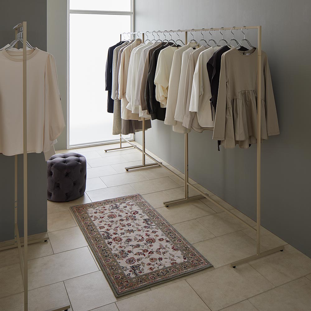 華奢なフレームが空間に上品になじんで、お気に入りの洋服を引き立てます。