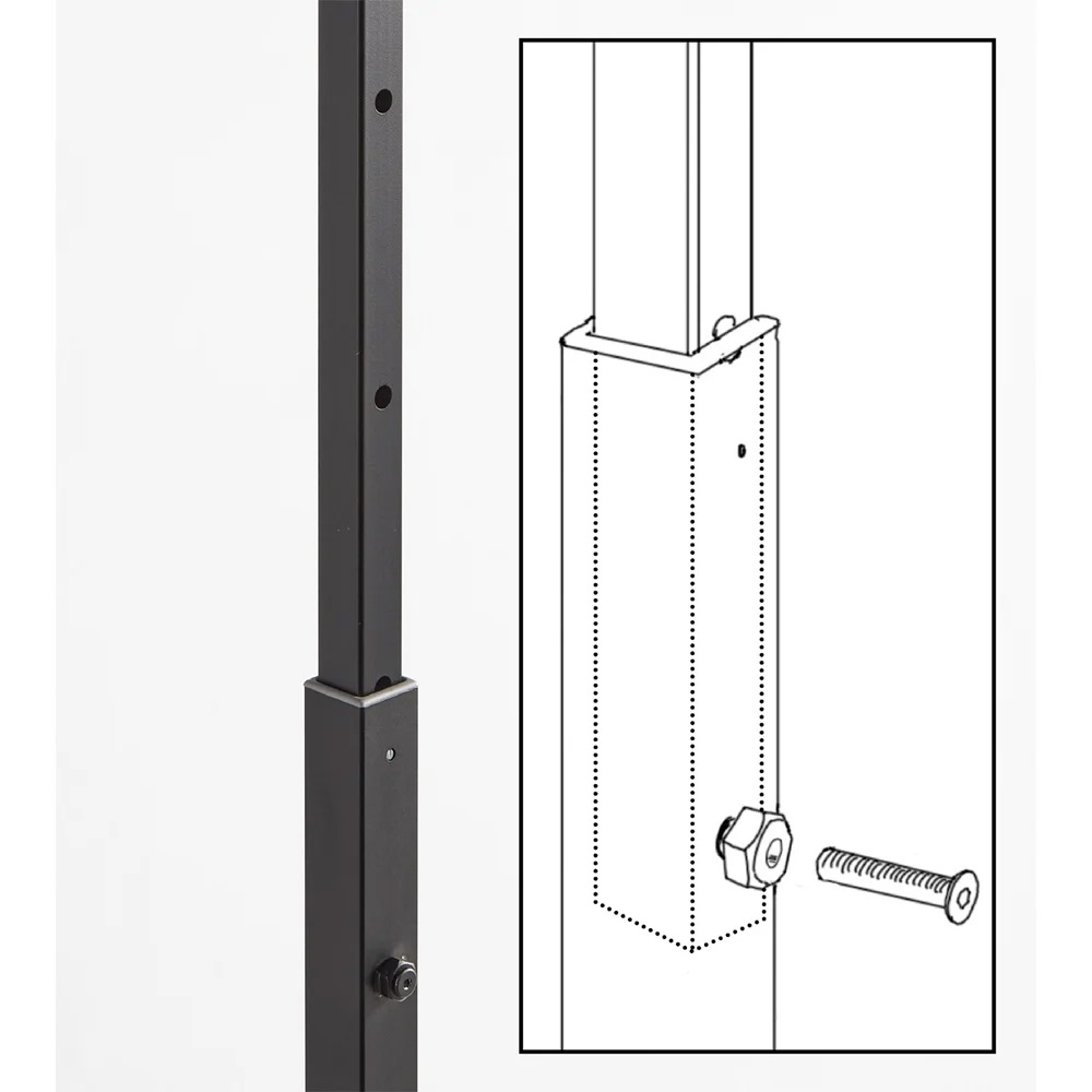 ビスで高さ調整穴にしっかり固定するので、洋服をたくさん掛けてもたわんだり歪んだりしにくい仕様です。
