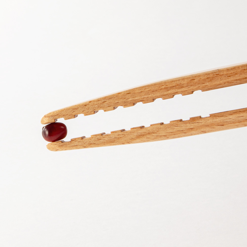 先が少し細くなり、内側には滑りにくくするための凹凸が。プチトマトや麺類など、つかみにくい素材もしっかり。